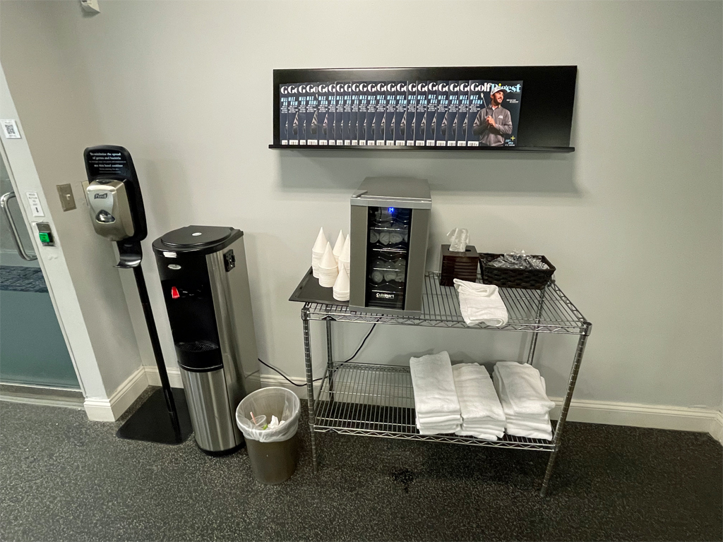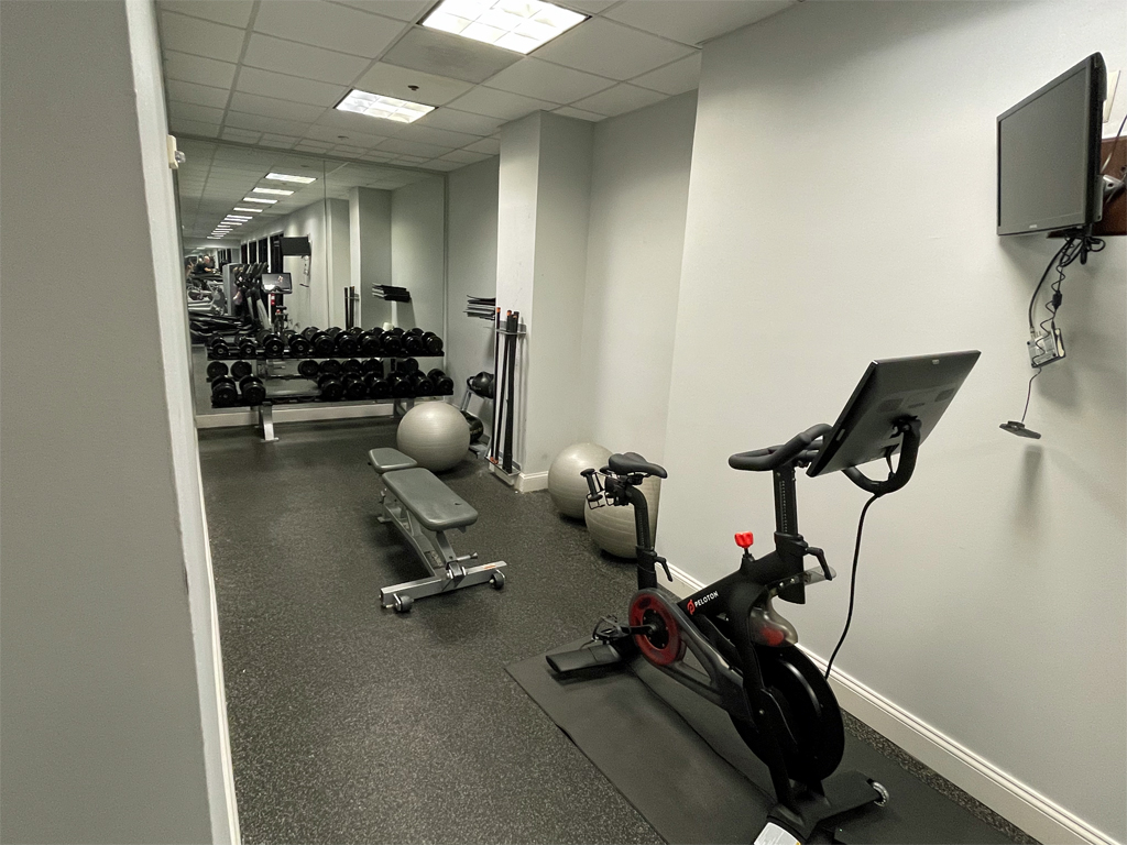 Das Fitnesscenter befindet sich im Erdgeschoss und ist mit der Zimmerkarte zugänglich. Darin befinden sich mehrere Cardiogeräte wie Laufbänder und Crosstrainer. Außerdem gibt es eine kleine Grundauswahl an Trainingsgeräten. In einer Nische findet sich ein Rack mit Freigewichten. Außerdem gibt es in einem Kühlschrank gekühlte Handtücher und einen Wasserspender.