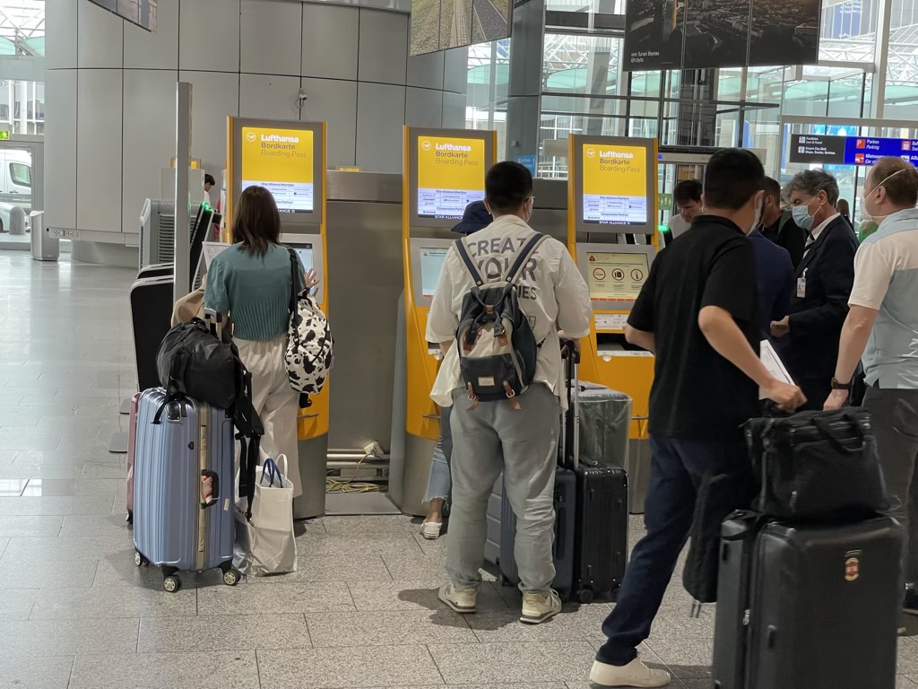 Wer lieber am Flughafen einchecken will, der kann dies in Frankfurt mit einem Economy Class Ticket an den dafür vorgesehenen Automaten machen. Hierbei gibt es in der Abflughalle eine ganze Reihe von Self Check-In Schaltern, welche im Grunde nur die Online Check-In Maske abbilden und am Ende eine Bordkarte ausdrucken.