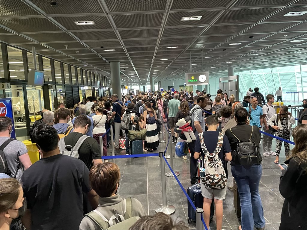 Generell sollte man wegen der aktuellen Situation im Sommer 2022 sehr viel Zeit mitbringen vor seinem Abflug und drei bis vier Stunden vorher am Flughafen eintreffen. Dies liegt weniger an den Wartezeiten am Lufthansa Check-In, sondern an den horrenden Warteschlangen an der Sicherheitskontrolle, welche aufgrund der massiven Personalknappheit bei den von der Bundespolizei beauftragten Subunternehmern entstehen.