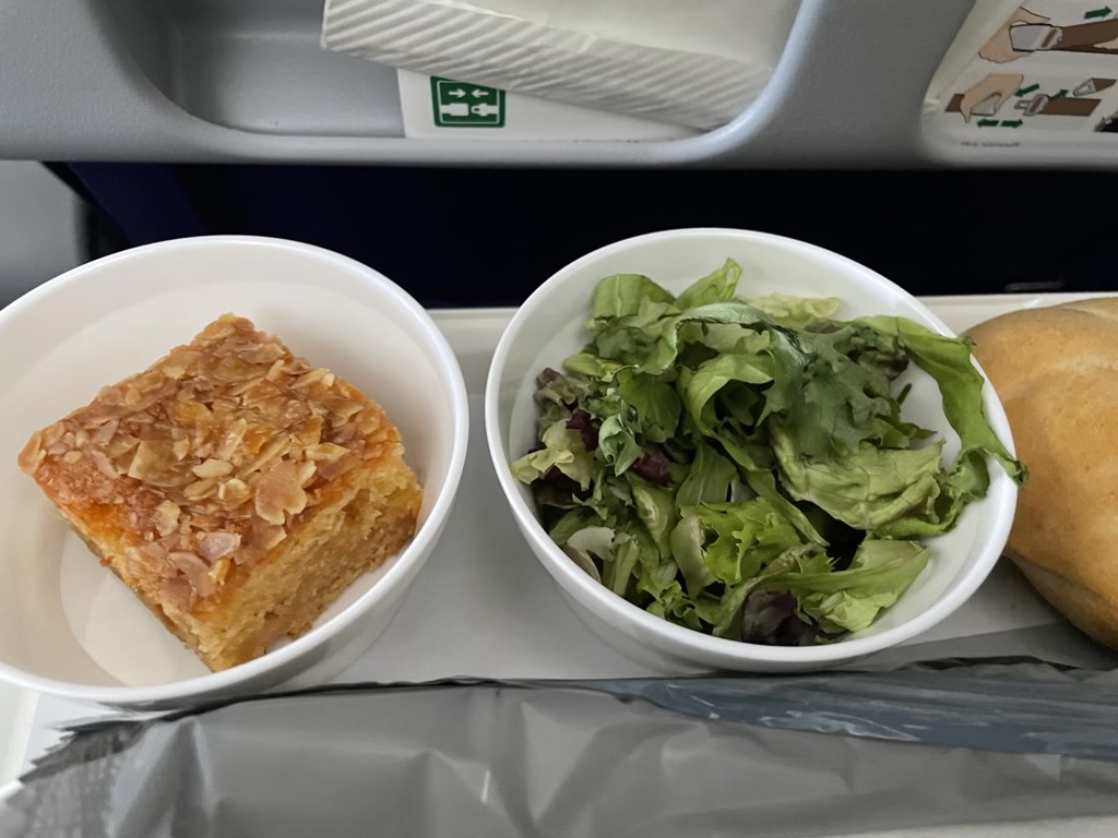 Leider kann ich über dieses Essen in der Lufthansa Economy Class nur sehr wenig Gutes berichten und das Highlight war vielleicht der Butterkuchen oder der Industriekäse samt Brötchen und Butter.