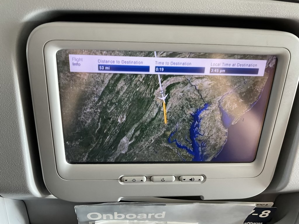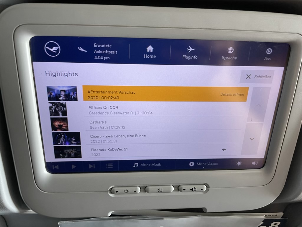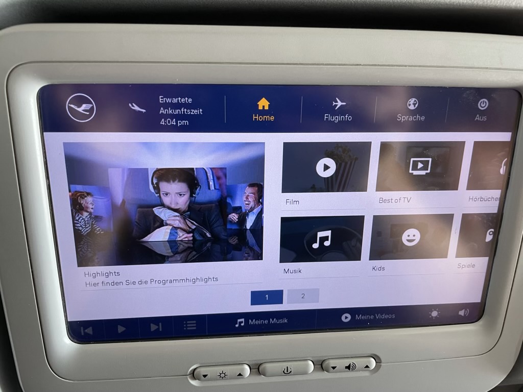 Auch hat mich bei dem Touch Screen Monitor sehr gestört, dass man unglaublich fest drücken musste, um einen Befehl einzugeben. Hier gibt es (auch bei Lufthansa in anderen Flugzeugen) deutlich modernere und bessere Monitore.