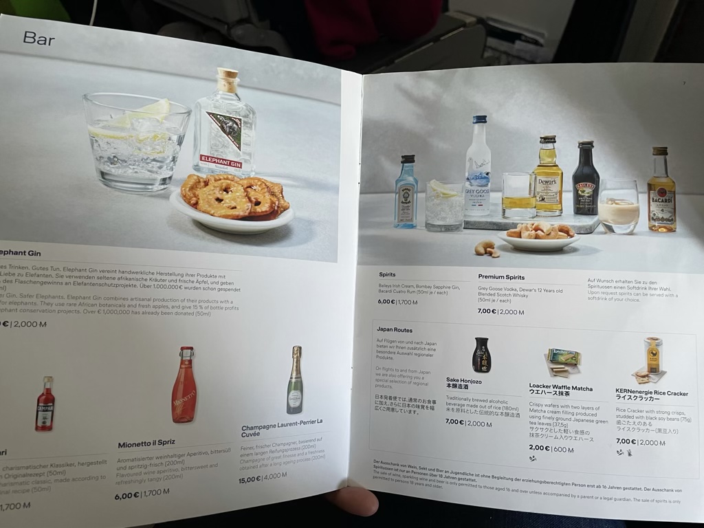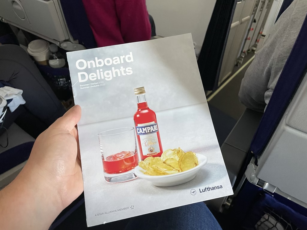 Recht kurz nach dem Start hat die Crew dann auch mit dem Service begonnen, was in der ersten Runde ein Cocktail Service bedeutet. Allerdings bedeutet Cocktail bei Lufthansa leider nur noch Bier, Wein und Sekt, denn die eigentlichen Cocktails müssen in der Economy Class nun bezahlt werden. Oder besser müssten, denn das Buy on Board war auf unserem Flug NICHT geladen.