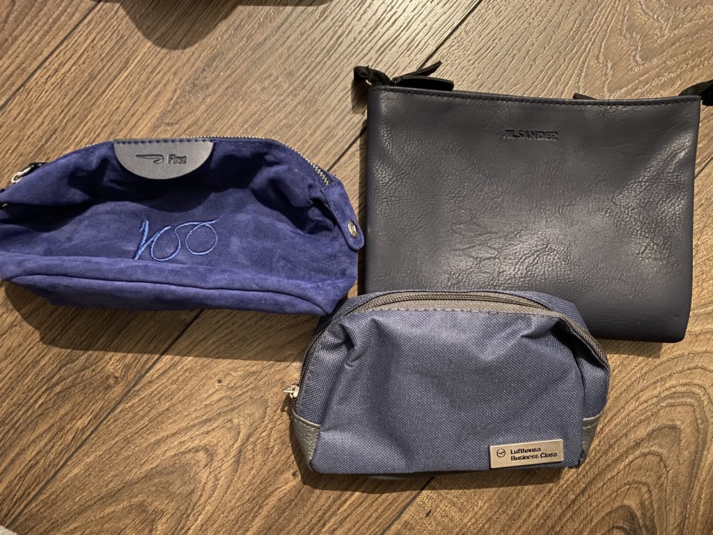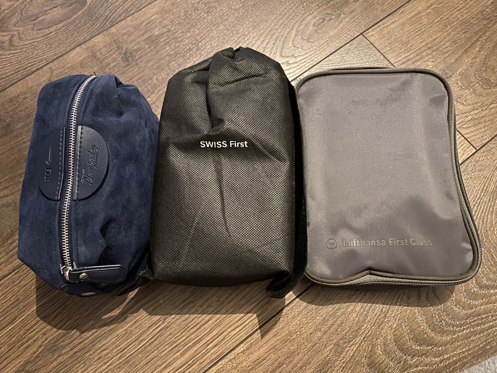 LH First windsor (11) 35€; Swiss First Kosmetik (12) 25€; Swiss First HER (13) 35€- British Airways First (14) 35€; Swiss First HIS (15) 35€; LH First grau (16) 30€