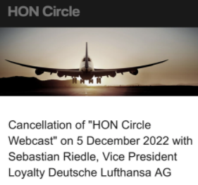 Am Montag hat Miles&More zu einem HON Circle Webcast eingeladen und wollte zunächst die wichtige Kundengruppe über Neuerungen informieren. Nachdem das neue Statusprogramm auf unbestimmte Zeit verschoben wurde, hat man hier weitere Details und die Ankündigung eines Starttermins erwartet. Doch nur wenige Stunden vor dem geplanten Online Meeting wurde die Veranstaltung abgesagt. Die Hintergründe der Entscheidung sind nicht bekannt, die Macher wollen „so bald wie möglich“ wieder auf die Supervielflieger zukommen.