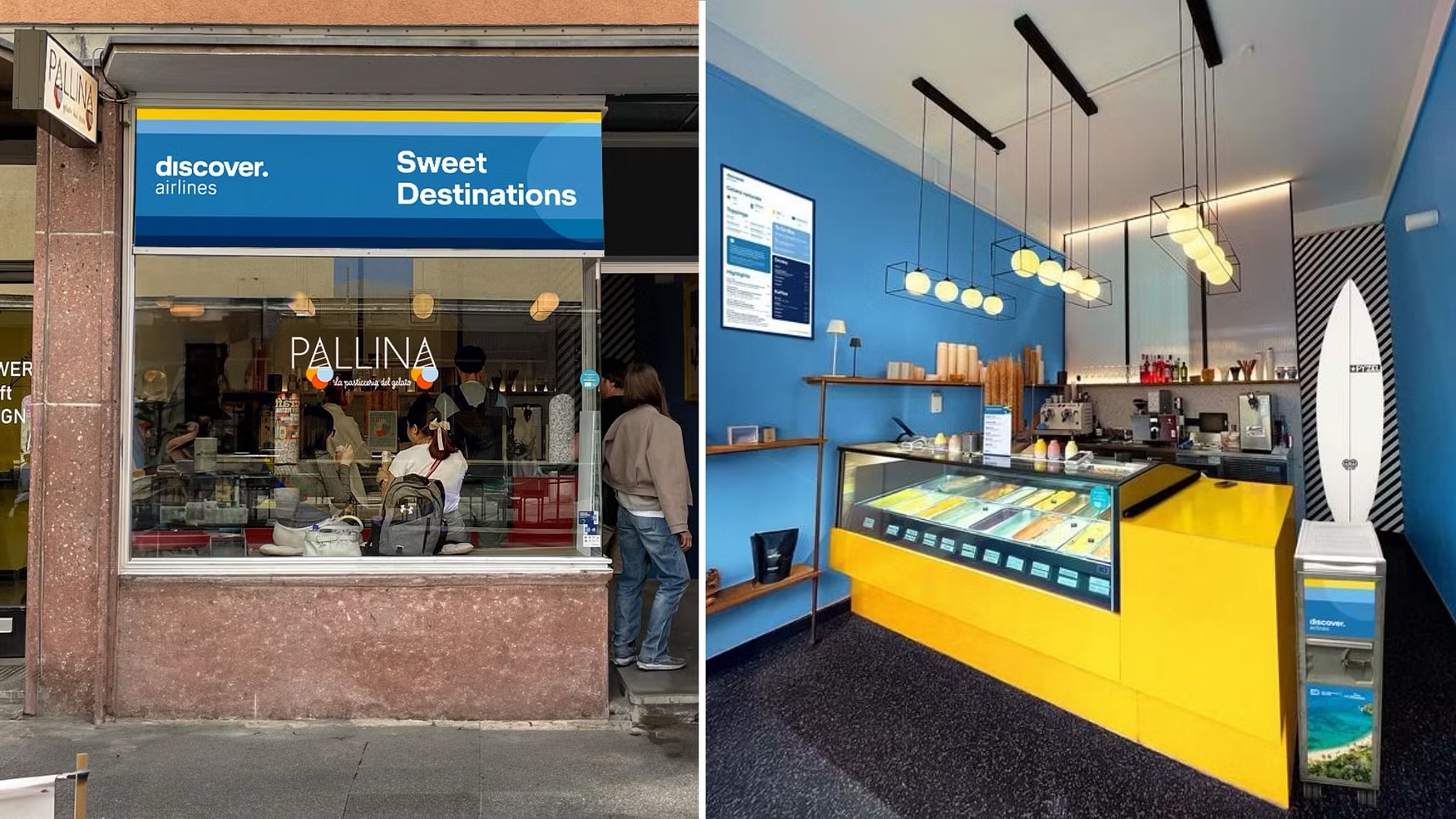 Zum Ende der hessischen Sommerferien übernimmt Discover Airlines vier Tage lang die Eisdiele Pallina am Mainufer. Unter dem Motto „Fernweh zum Löffeln“ tragen die Sorten Namen aus dem Flugplan, etwa „Punta Cana“ (Schokoladensorbet mit Kokos), „Skiathos“ (Joghurt-Lemon-Crunch mit Honig) oder „Marrakesch“ (Weiße-Schokolade-Mohn mit Dattelsirup). Kugeln kosten regulär 2,50 Euro. Zusätzlich gibt es täglich die Chance auf Fluggewinne. Ziel der Aktion ist es, die junge Marke sympathisch zu präsentieren und Urlaubsstimmung zu verbreiten.