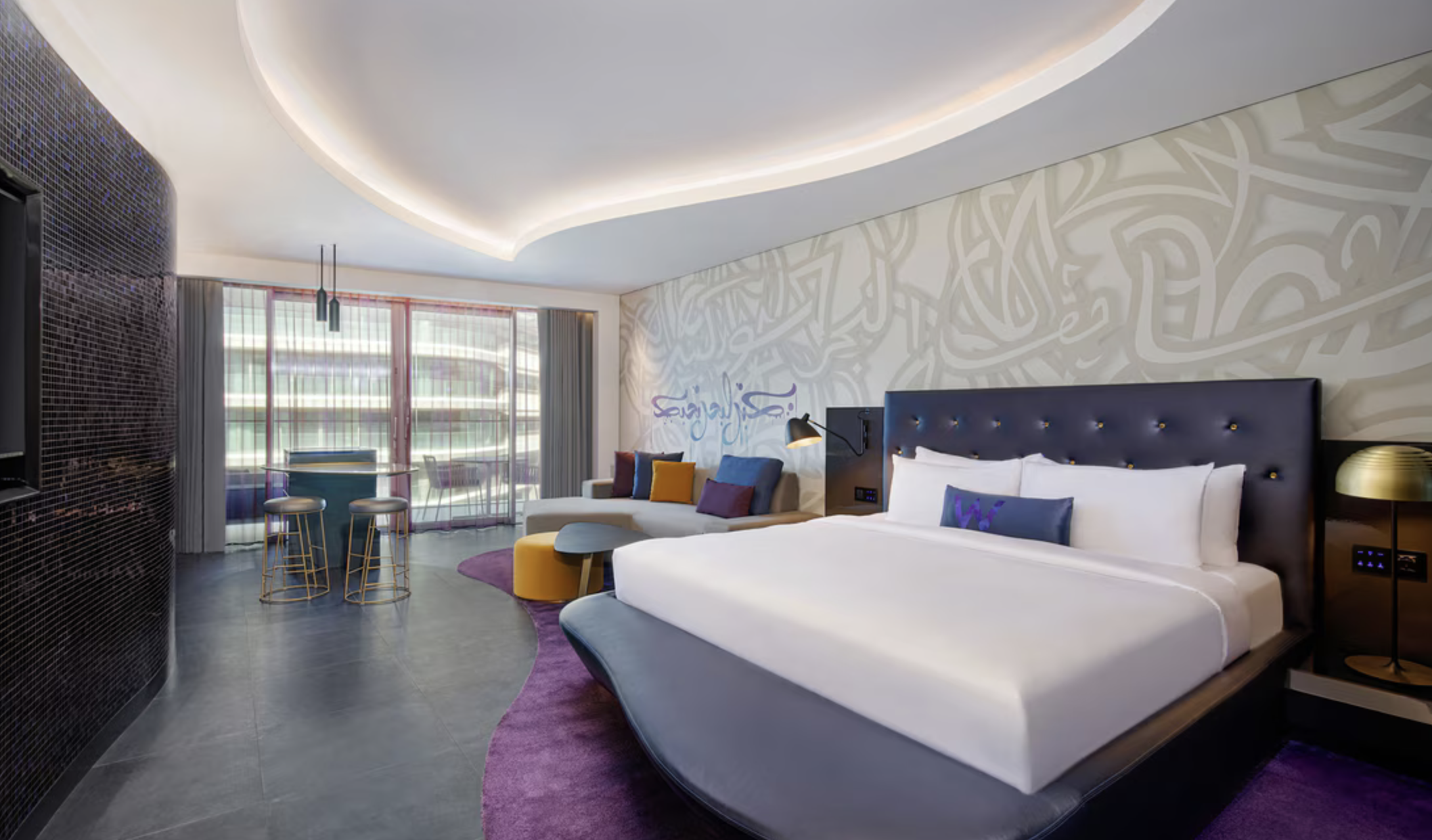 Das Hotel liegt direkt am Strand des westlichen Palmenbogens und bietet damit einen ruhigen, privaten Rückzugsort mit gleichzeitig kurzer Anbindung zu Hotspots wie dem Atlantis The Royal, dem Nakheel Mall sowie der Dubai Marina. Schon beim Betreten des W Dubai fällt das für W Hotels typische auffällige, futuristische Interieur ins Auge: moderne Kunstinstallationen und mutige Farben, die sich durch alle Bereiche ziehen. Das Hotel richtet sich an Gäste, die Wert auf Stil, Entertainment und ein hochwertiges, aber unkonventionelles Urlaubserlebnis legen.