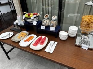 Hier wird auch das Frühstück serviert. Das Buffet wirkte zunächst etwas karg, es wurden aber auch Omelettes frisch zubereitet. Getränke inkl. Barista-Kaffee wurden an den Tisch gebracht.