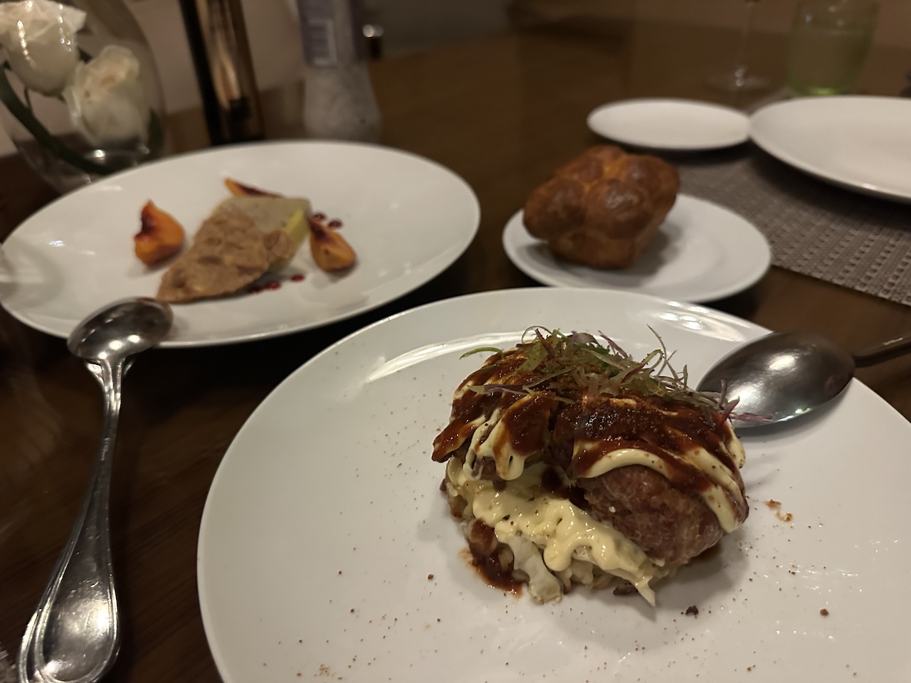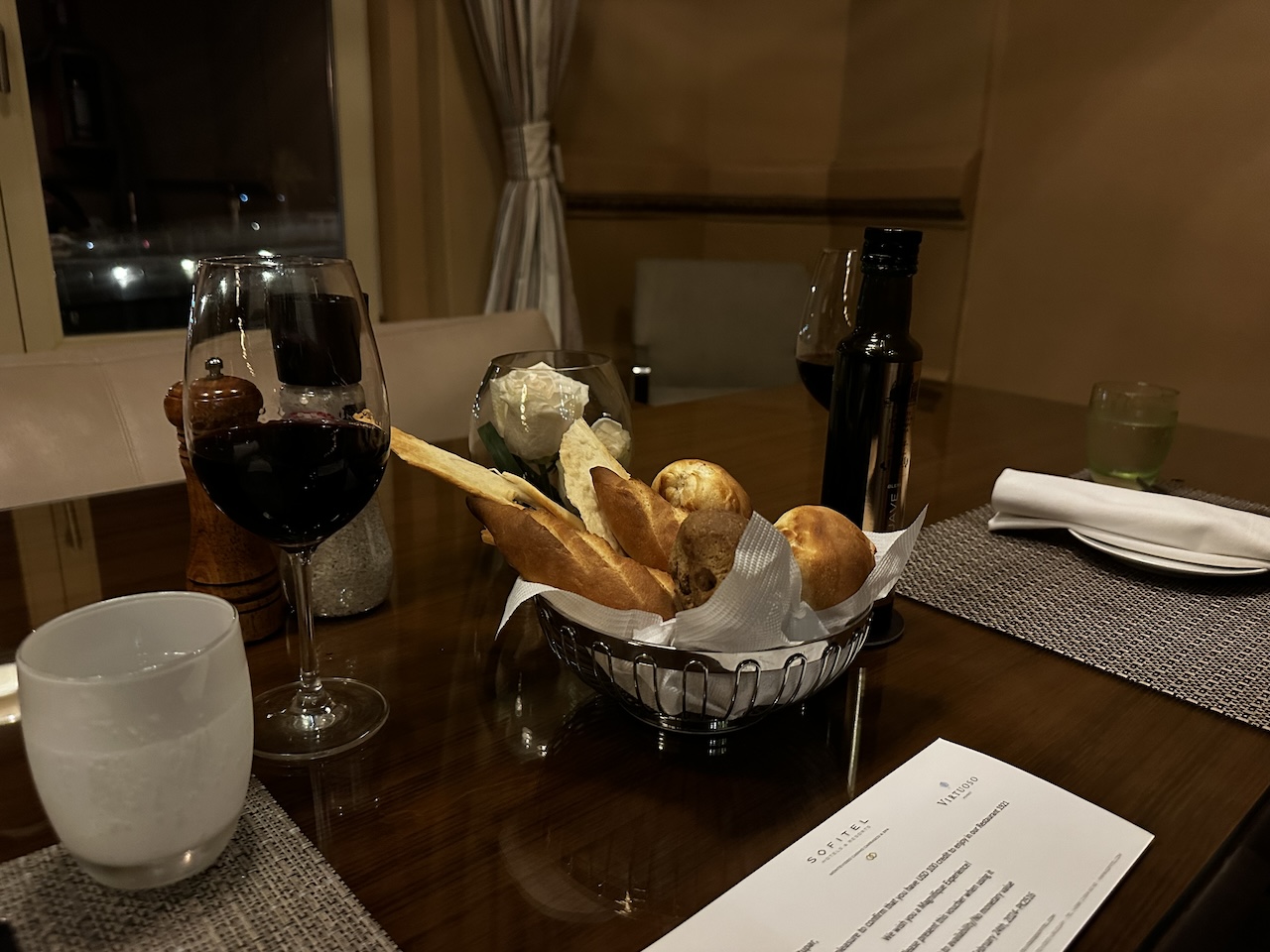Das Guthaben wurde von uns für das Dinner im Restaurant genutzt. Wir bestellten je zwei Vorspeisen und Hauptgänge sowie Wasser und Wein. Der Service war sehr zuvorkommend, hier war auch der Mitarbeiter der Bar im Einsatz, der sich viel Zeit für die Beratung und Bestellung genommen hat. Das Essen inkl. Brot, lokalem Olivenöl und Gruß aus der Küche war exzellent.