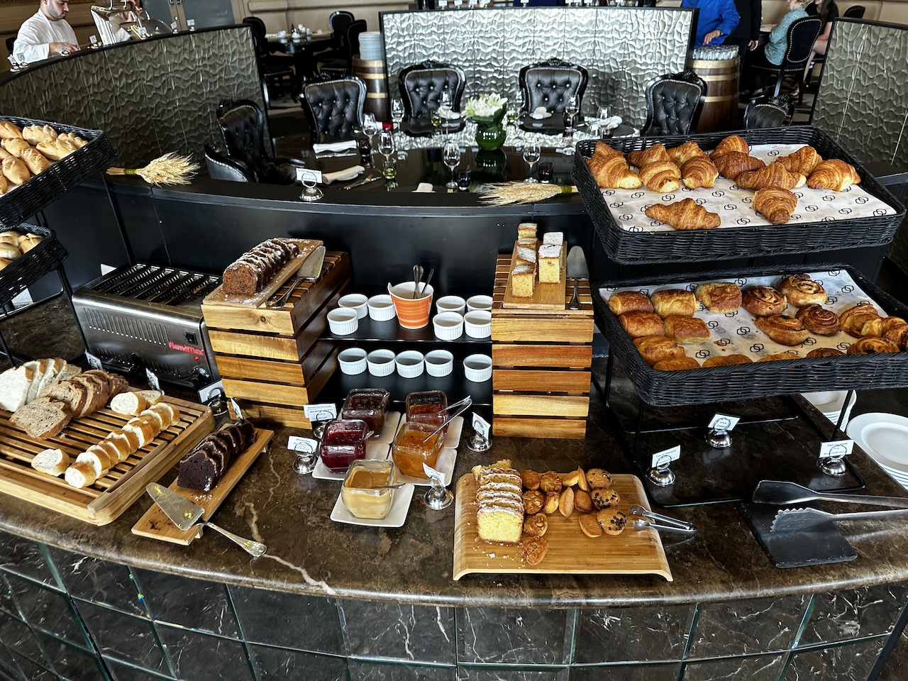 Hier wurde auch das Frühstück serviert, wer Glück hat, ergattert einen Fensterplatz und kann mit einen guten Aussicht in den Tag starten. Das Buffet ist reichhaltig und hochwertig, Eierspeisen und Heißgetränke werden auf Wunsch zubereitet und an den Tisch gebracht.