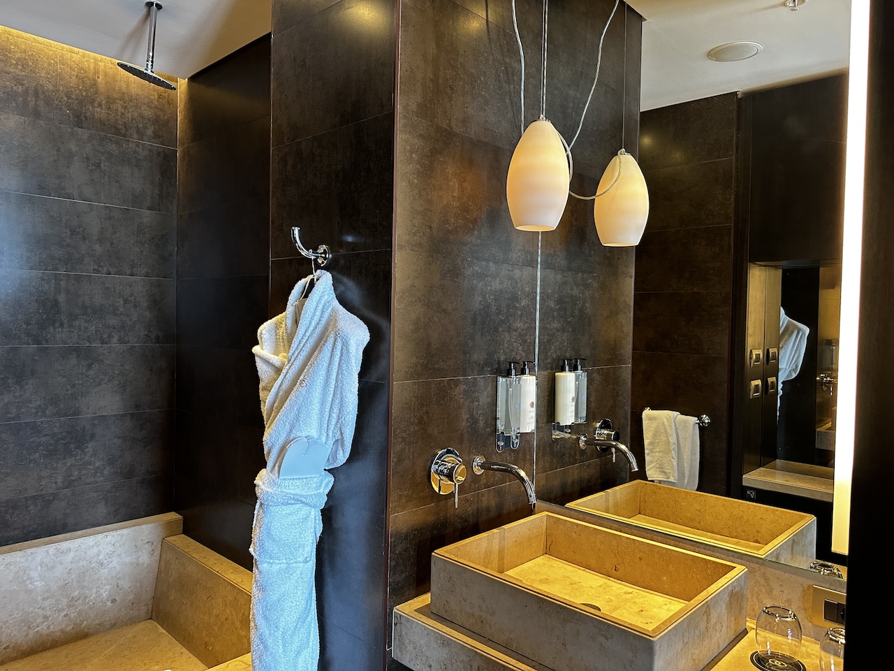 Zur Ausstattung gehören u.a. Wasserkocher, Kühlschrank und Bügeleisen sowie Bademäntel. Ich freue mich in den besseren Hotels zwar auch über eine Espressomaschine oder ein paar weitere Amenities im Bad, aber das sind nur Kleinigkeiten.