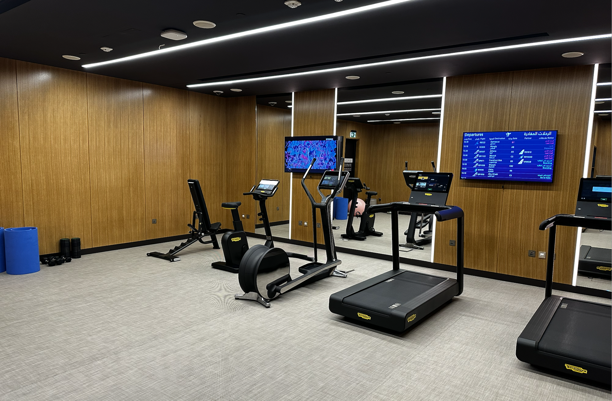In der neuen Lounge „The Garden“ bietet Qatar Airways auch den Passagieren der Business Class diverse Annehmlichkeiten, dazu gehört ein richtiges Fitnessstudio und abgetrennte Ruheräume.