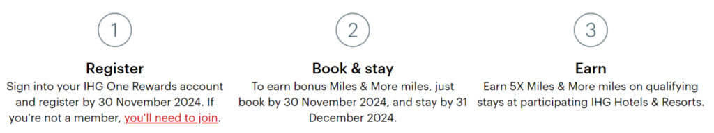 Normalerweise erhaltet Ihr 2 Miles & More Meilen pro ausgegebenem US-Dollar in den IHG Hotels. Registriert Ihr Euch für die Aktion und stellt Eure Sammelpräferenz auf Meilen um, sammelt Ihr zehn Prämienmeilen pro US-Dollar. Diese Aktion gilt für Aufenthalte bis zum 31. Dezember 2024, sofern Ihr Euch bis zum 30. November 2024 registriert und vor demselben Datum gebucht habt.
