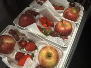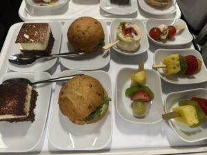 Während des Fluges gab es mittendrin weitere Snacks, die für mich neu waren. Auch in den Bordküchen standen zahlreiche Snacks und Obst bereit.