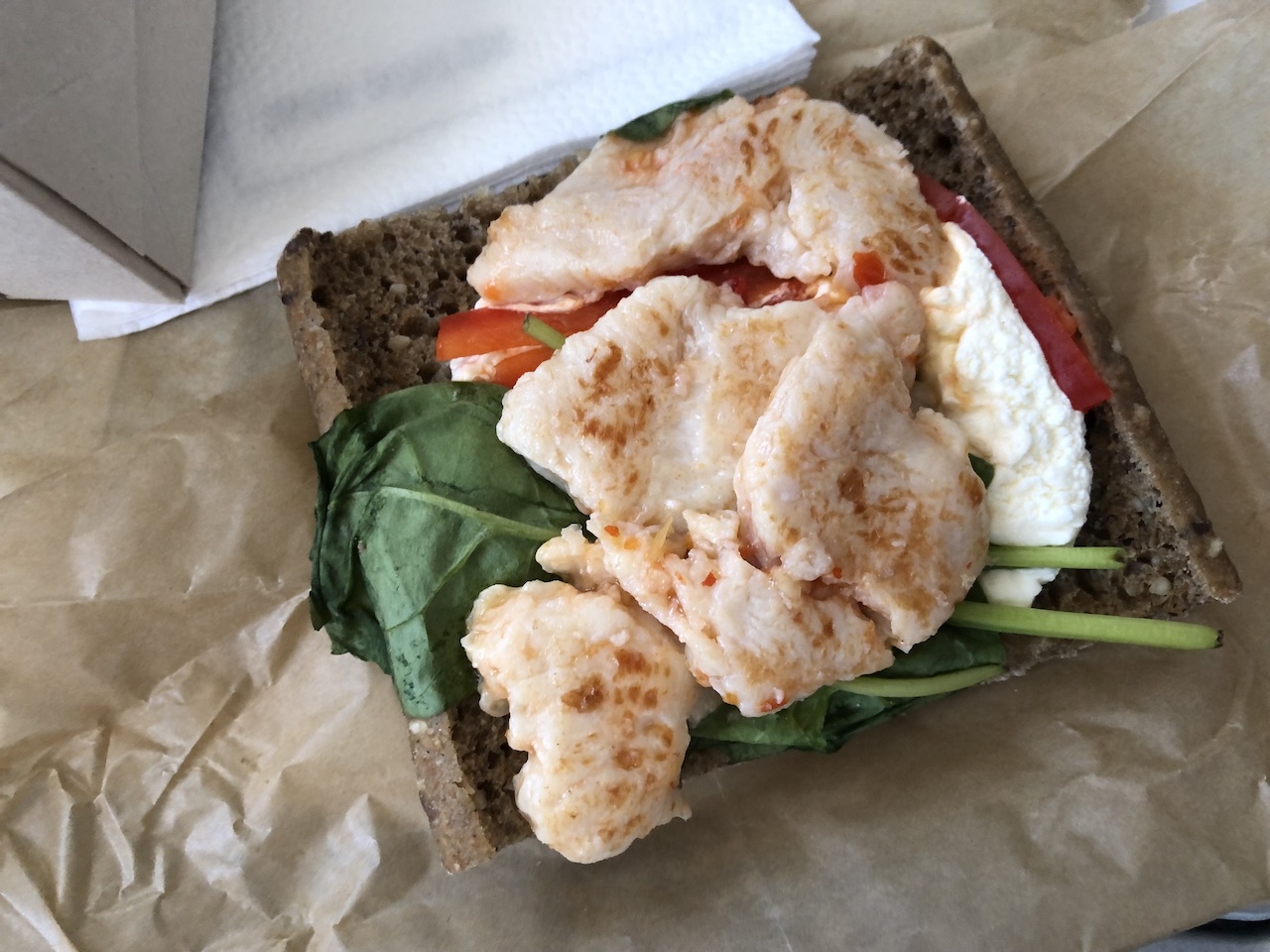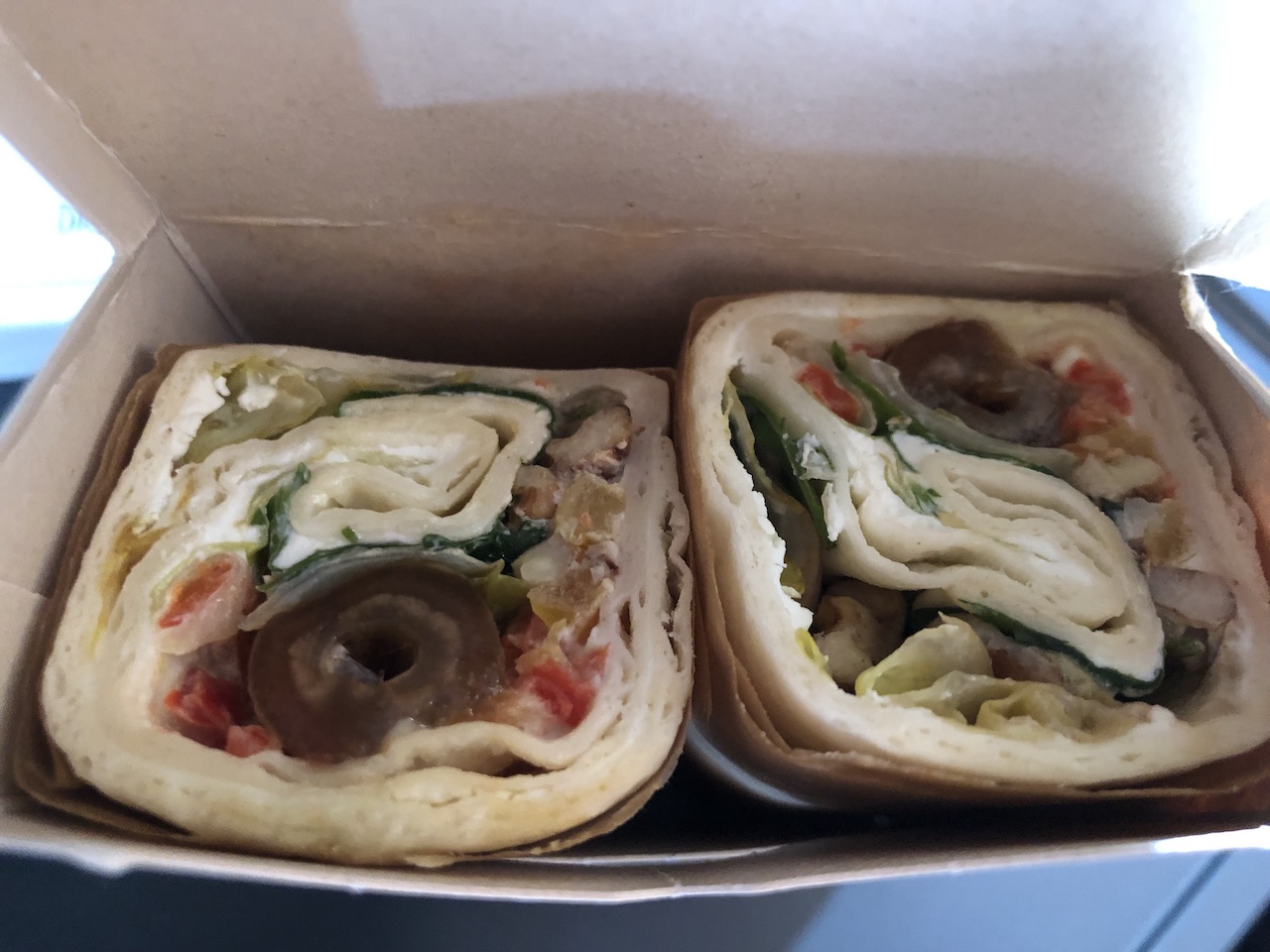 Sandwiches findet man in den Menükarten aller Airlines, kein Wunder dass diese geblieben sind. Die Variante mit Pastramibelag ist verschwunden, der Nachfolger heißt „Sweet Chili Chicken“.