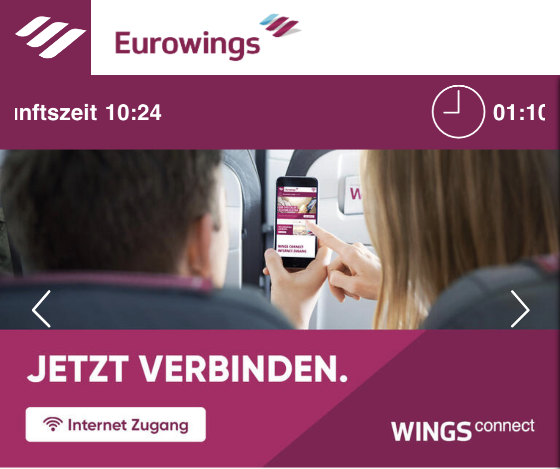 Wenige Minuten nach dem Start gab es einen Hinweis auf das Unterhaltungsprogramm bzw. den Internetzugang.