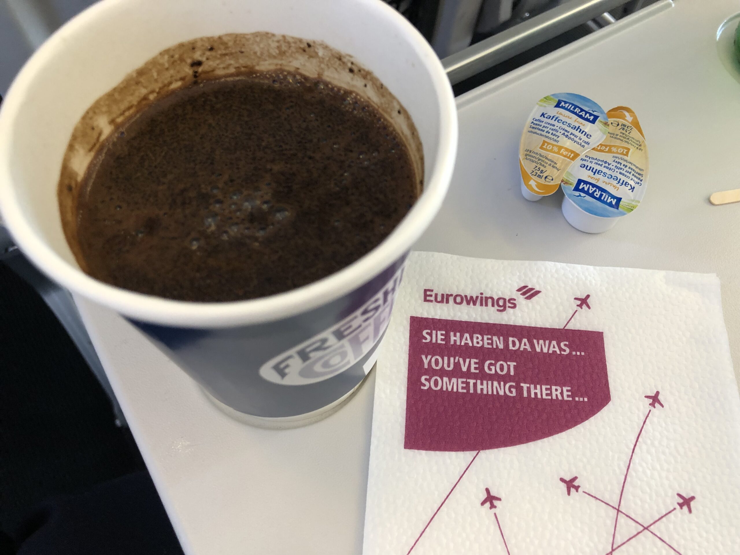 Alles in allem bekommt man in etwa das was auch Lufthansa bietet- ein Glas, Porzellantasse oder einen Vorhang gibt es bei Eurowings jedoch nicht.