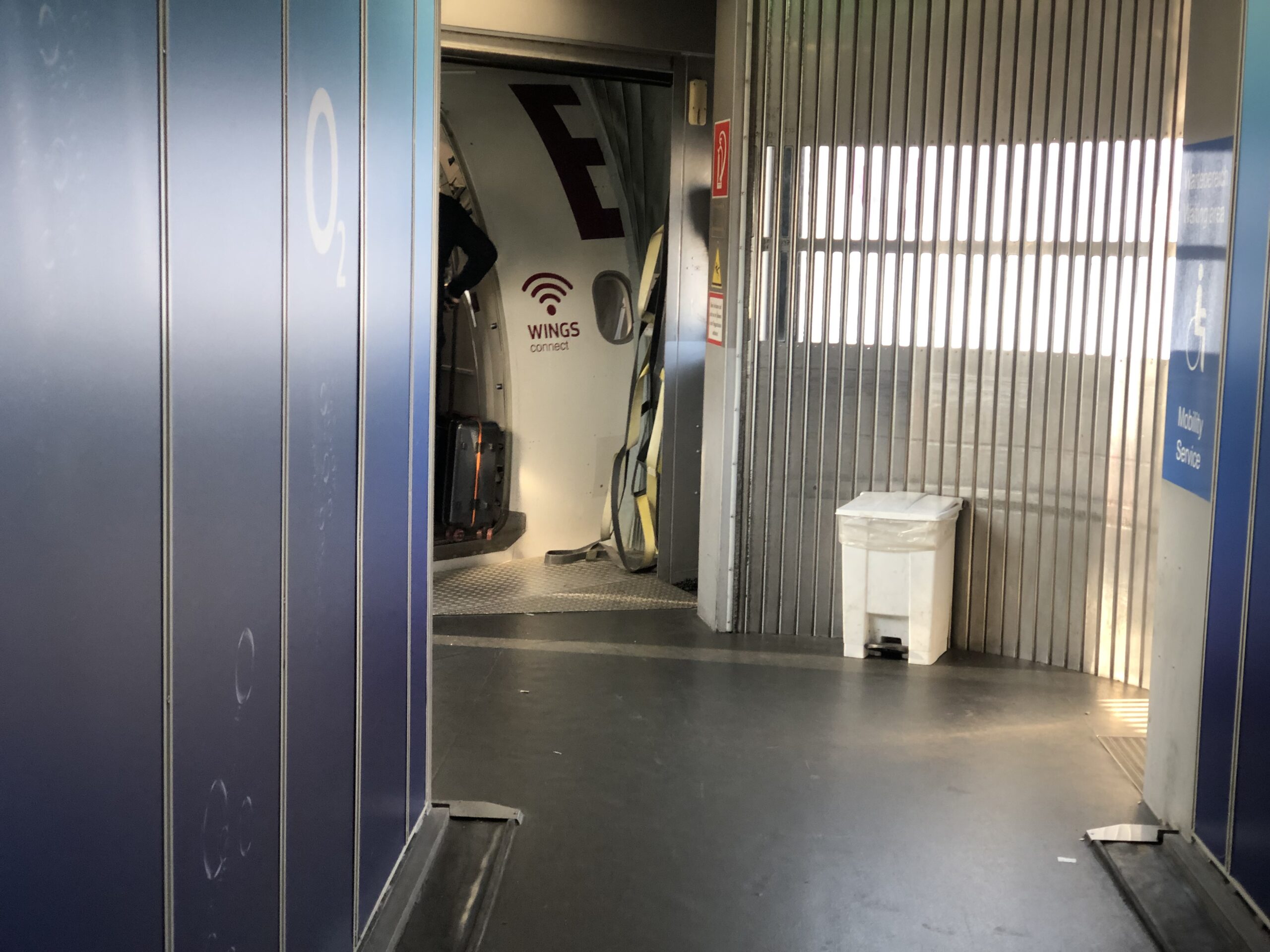 Am Gate wurde ich von einer Mitarbeiterin angesprochen ob ich nach Hamburg fliegen würde. Dies bejahte ich, woraufhin sie mich auf die Handgepäcksregeln hingewiesen hat. Demnach dürfen Gäste im Basic Tarif lediglich ein kleines Gepäckstück an Bord nehmen, ein Trolley ist erst im Smart-Tarif inkludiert. In der BIZClass sind zwei große Gepäckstücke erlaubt. Ein paar Augenblicke später kam die Dame mit einer Papierbordkarte zurück und meinte dass ich der einzige Business-Gast bin und genügend Platz für meinen Trolley und eine Tasche haben sollte.