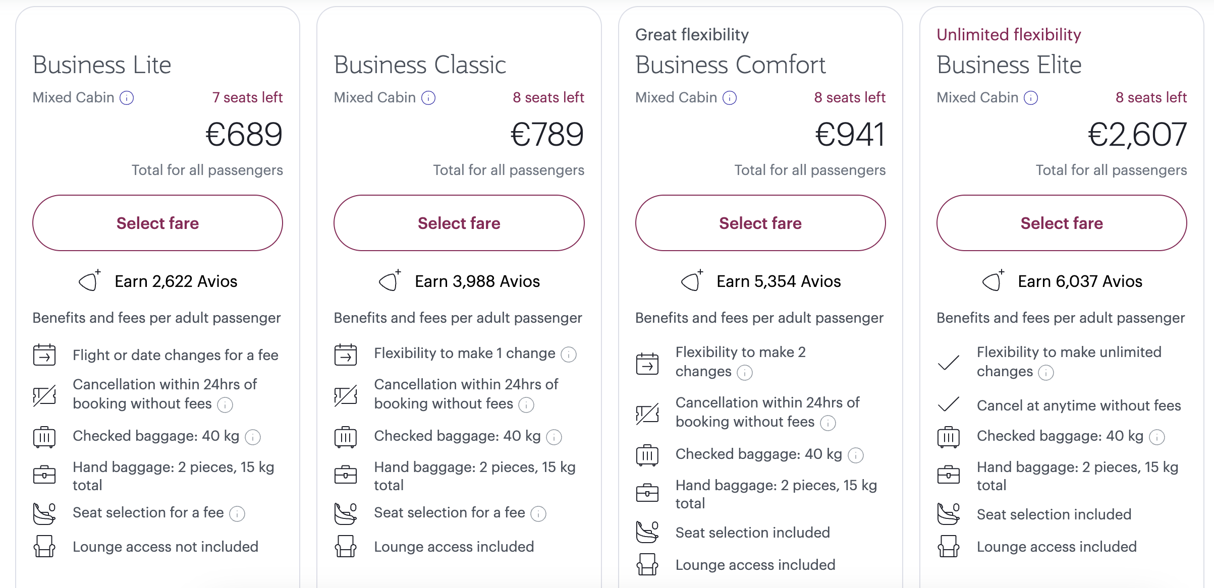 Ich habe nur wenige Tage vor Abflug gebucht und hatte die volle Auswahl, die günstige Business Lite Fare war sowohl nach Dubai als auch nach Sharjah und Abu Dhabi zu haben. In dem Lite Tarif gibt es zwar weniger Avios und keinen Loungezugang, dank Statuskarte darf man dennoch loungen und auch gratis Sitzplätze reservieren. Auch bei den Tier Points gibt es keinen Unterschied, es wird der volle Business bzw. First-Wert kreditiert.