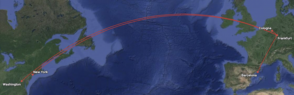 Bei dem Premium Economy Class Ticket wurde ich dann noch etwas kreativer und habe ab Barcelona günstige Tarife gefunden. Hierbei fliege ich nun Barcelona- Frankfurt- Washington D.C. in der Premium Economy Class und als Rückflug habe ich New York über Frankfurt nach Köln als „Wegwerfticket“ in der Economy Class (L) eingebucht. Dieses Ticket landete bei knapp 1150 Euro und ich habe es direkt bei Lufthansa gebucht.