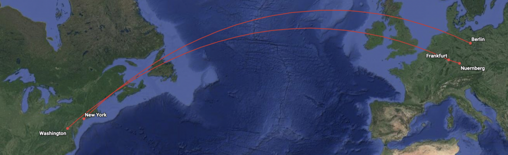 Zwar hat mir diese Überbuchung nun eine schnelle Bestätigung des Upgrades verschafft, aber es fehlte nun ein Premium Economy Class Ticket. Hier hieß es dann wirklich in den saueren Apfel beißen und wir buchten eine G Klasse (teuerste Premium Economy Class Buchungsklasse) von Nürnberg über Frankfurt nach Washington D.C. und als Rückflug ein „Wegwerfticket“ in der Economy Class (L) mit United Airlines von Newark nach Berlin. Niko spielt aber gerade mit dem Gedanken auch den Rückflug im folgenden Jahr zu nutzen, also warum nicht?