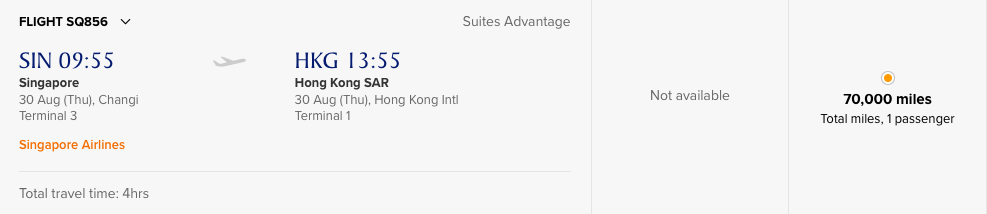 Man kann diese zwar besonders auf dem Flug nach Hongkong als Warteliste anfragen, allerdings sind meine Erfahrungen mit der Singapore Airlines KrisFlyer Warteliste sehr bescheiden. Hier werden Flüge auch gerne einmal mit halb voller First Class rausgeschickt, anstatt die Wartelisten zu bestätigen. Daher habe ich in den „Sauren Apfel gebissen“ und 70.000 KrisFlyer Meilen pro Person für Advantage Level Suite Awards ausgegeben.