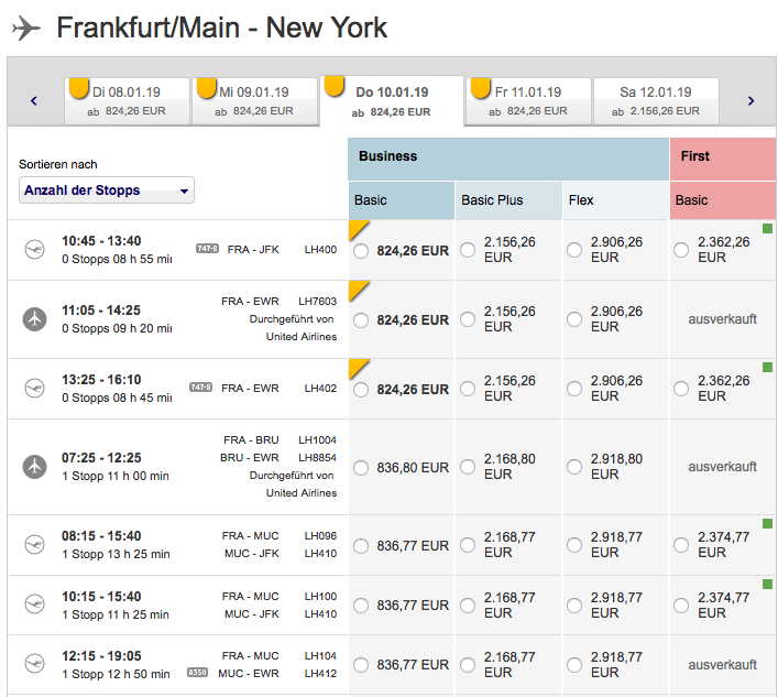 Natürlich funktioniert dies mit allen Zielen und in allen Reiseklassen und ist nicht nur auf die First- und Business Class wie in unserem Beispiel beschränkt.