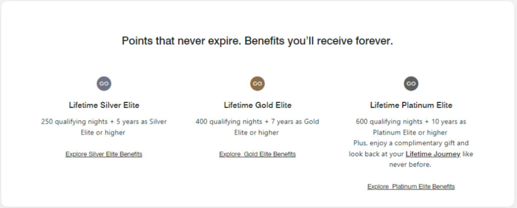 • Lifetime Gold Elite: 400 Nächte und mindestens sieben Jahre mindestens als Gold Elite Mitglied