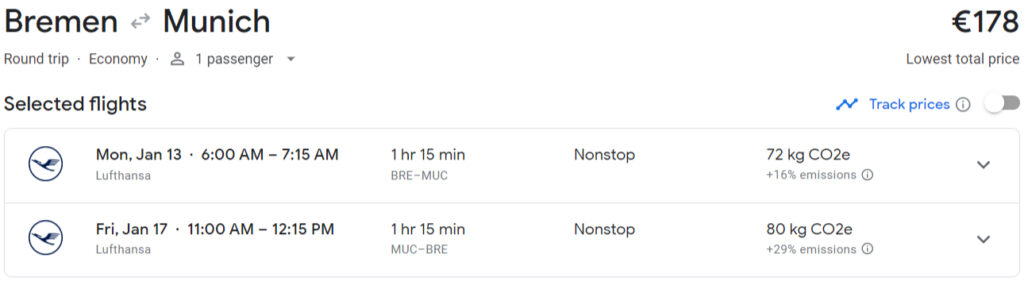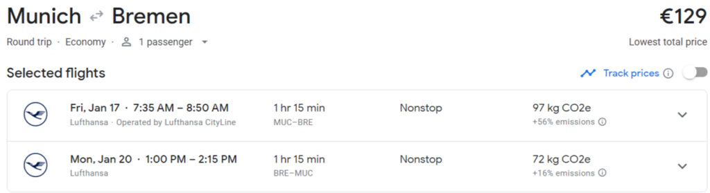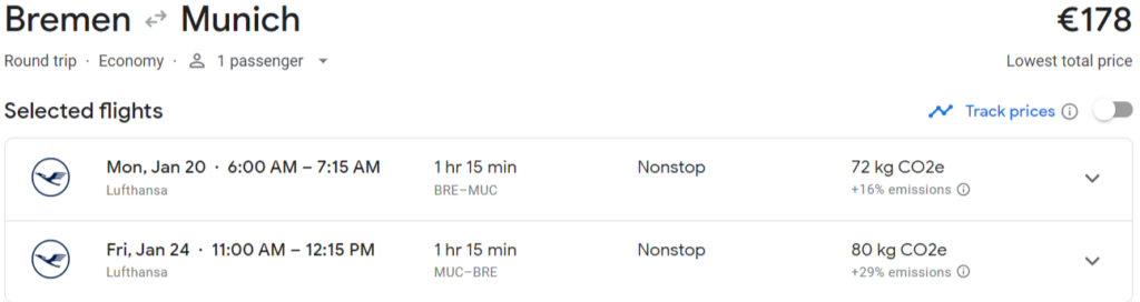 Hinflug: 17. Januar 2025 München (MUC) → Bremen (BRE)