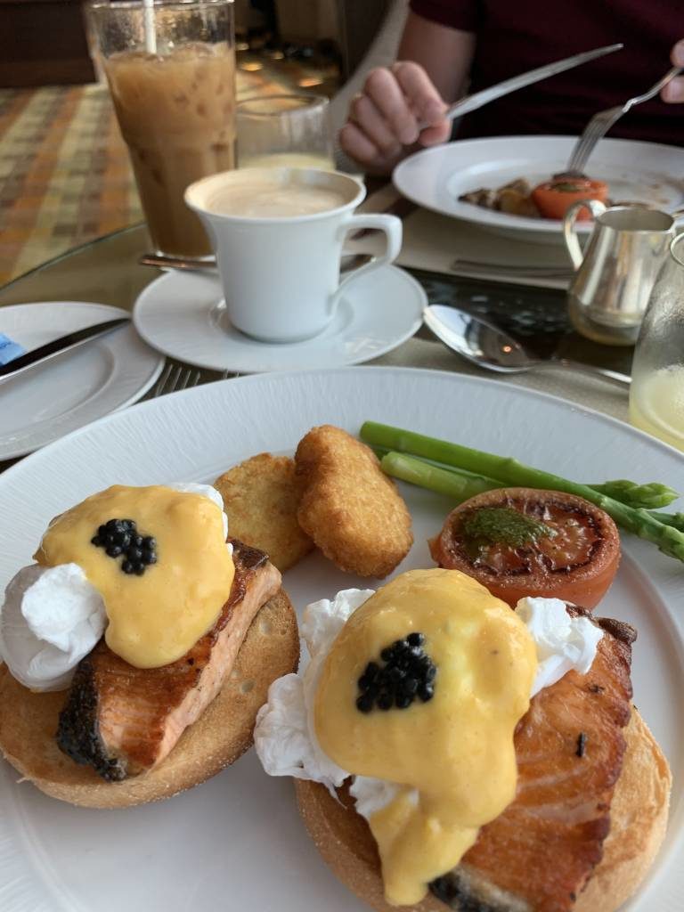 • Frühstück: Der Unterschied zwischen dem Frühstück im klassischen Restaurant und der Lounge ist das deutlich ruhigere Ambiente. Während im Club die Auswahl am Frühstücks-Büfett meist deutlich kleiner ist, ist die Qualität oft noch ein Stück höher. Auf Wunsch serviert man Euch häufig aber auch alle Speisen, die es so beim Haupt-Frühstück gibt. Eine Besonderheit hat das Frühstück im Club: Es muss Speisen a la Carte geben. Dazu gehören natürlich auch die beliebten Eggs Benedict, die ich bisher noch immer auf der Speisekarte gefunden habe. Exklusive Clubs lassen Euch das Frühstück bei einem Gläschen prickelndem Champagner genießen. Ich bin mir sicher, dass das sogar verpflichtend ist, wird aber sehr häufig anders gehandhabt.