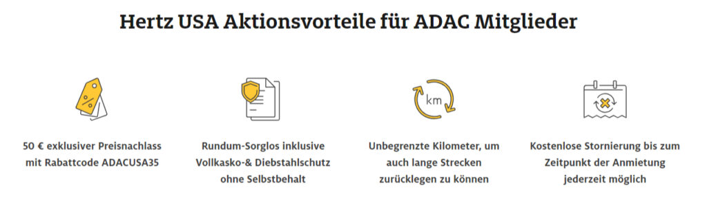 Hier geht es zur ADAC Autovermietung mit 50 Euro USA-Rabatt