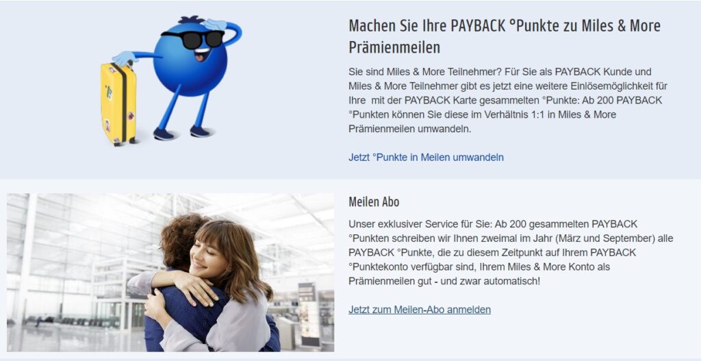 Lasst aber die Finger vom Meilenabo und wandelt Paybackpunkte in Miles & More Prämienmeilen immer dann, wenn es eine Aktion gibt oder aber einmalig wenn ihr gerade konkreten Bedarf habt.