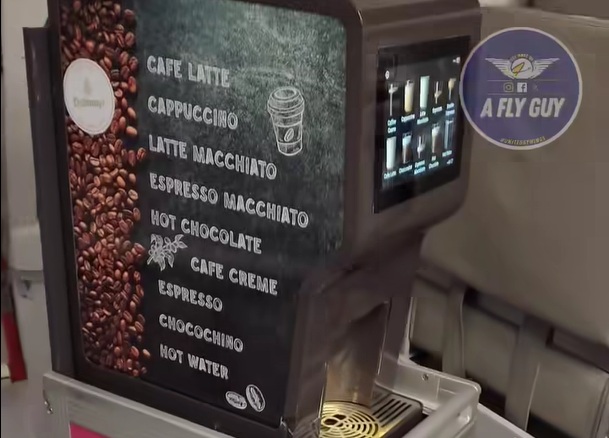 Dabei serviert er nicht nur klassischen Caffè Crema, was an Bord eines Flugzeuges schon ein Highlight ist. Zusätzlich stehen noch Caffè Latte, Cappuccino, Latte Macchiato, Espresso, heiße Schokolade und weitere Heißgetränke zur Auswahl.