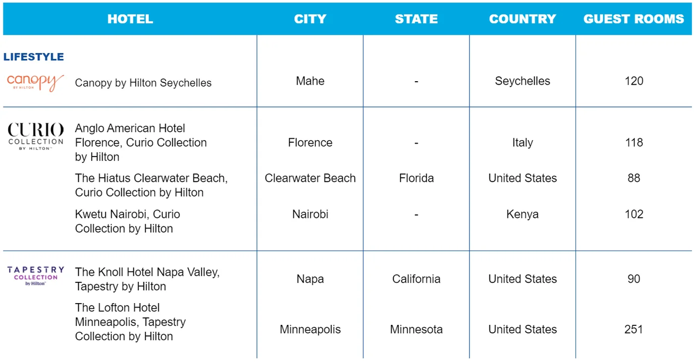 Beginnen wir mit den Highlights, unter den Neueröffnungen ist ein CURIO in Florenz und ein Canopy auf den Seychellen.