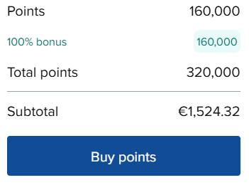 Den vollen Bonus von 100 % erhaltet Ihr ab einer Mindestanzahl von 15.000 Punkten. Das Maximum liegt bei dieser Aktion bei 240.000 Punkten. Rechnet ihr den Bonus ein, ergibt das bis zu 480.000 Hilton Honors Points. Je nach Mitglied und abhängig davon, ob Ihr in diesem Jahr bereits Hilton Punkte gekauft habt, können diese Werte variieren.