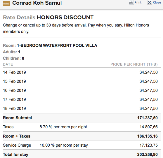 Natürlich ist das Einlösen von Hilton Honors Punkten im Conrad Malediven oder dem Conrad Koh Samui eigentlich immer sinnvoll, da man hier sonst meist über 700 Euro pro Nacht bezahlt.