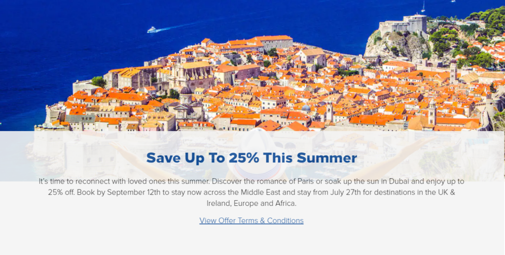 - Bis zu 25% Rabatt bei teilnehmenden Hotels in Europa, Middle East & Afrika