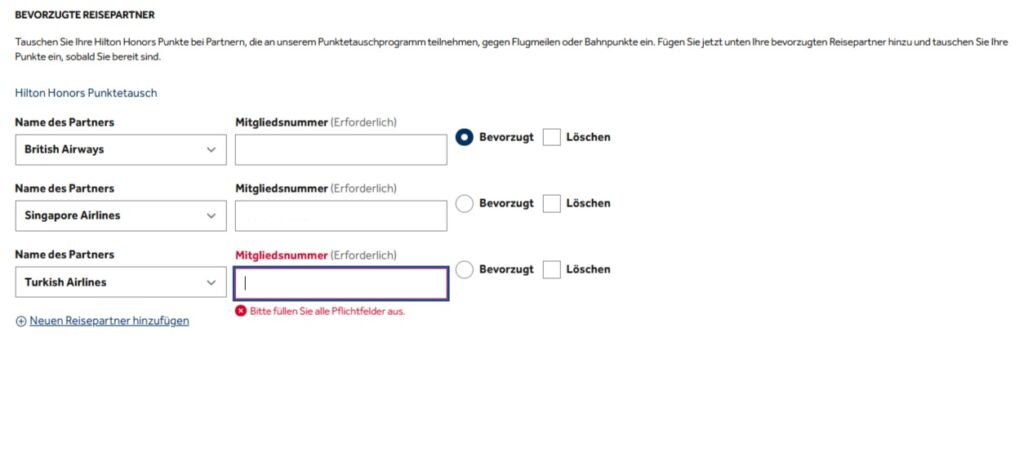 - Ändert in Eurem Hilton Honors-Konto die Sammelpräferenz auf Turkish Airlines Miles & Smiles.