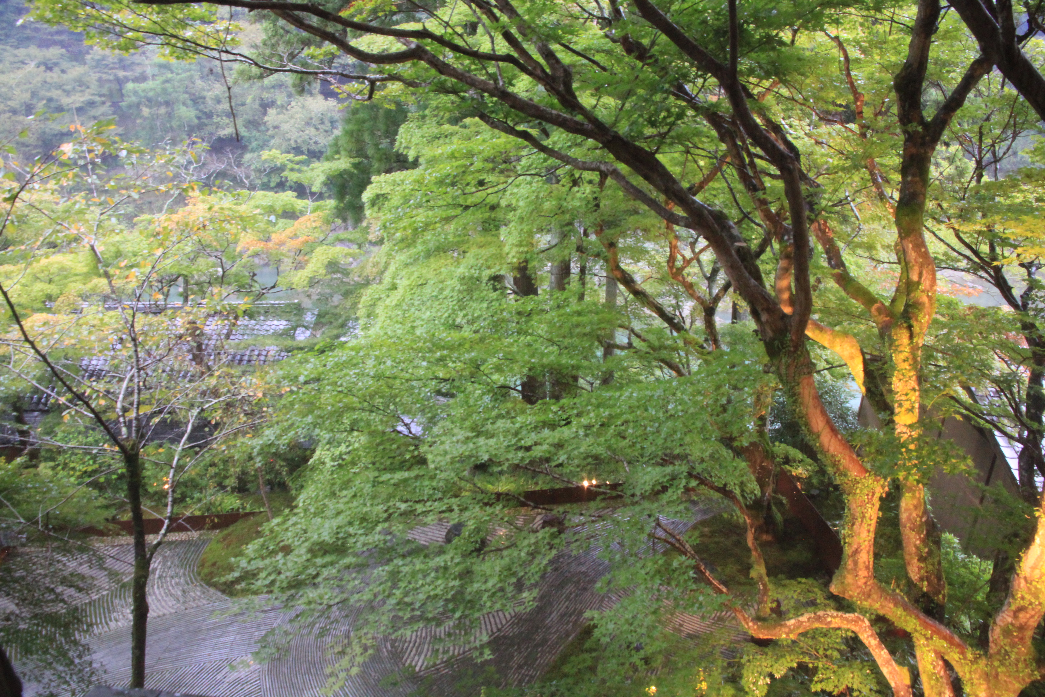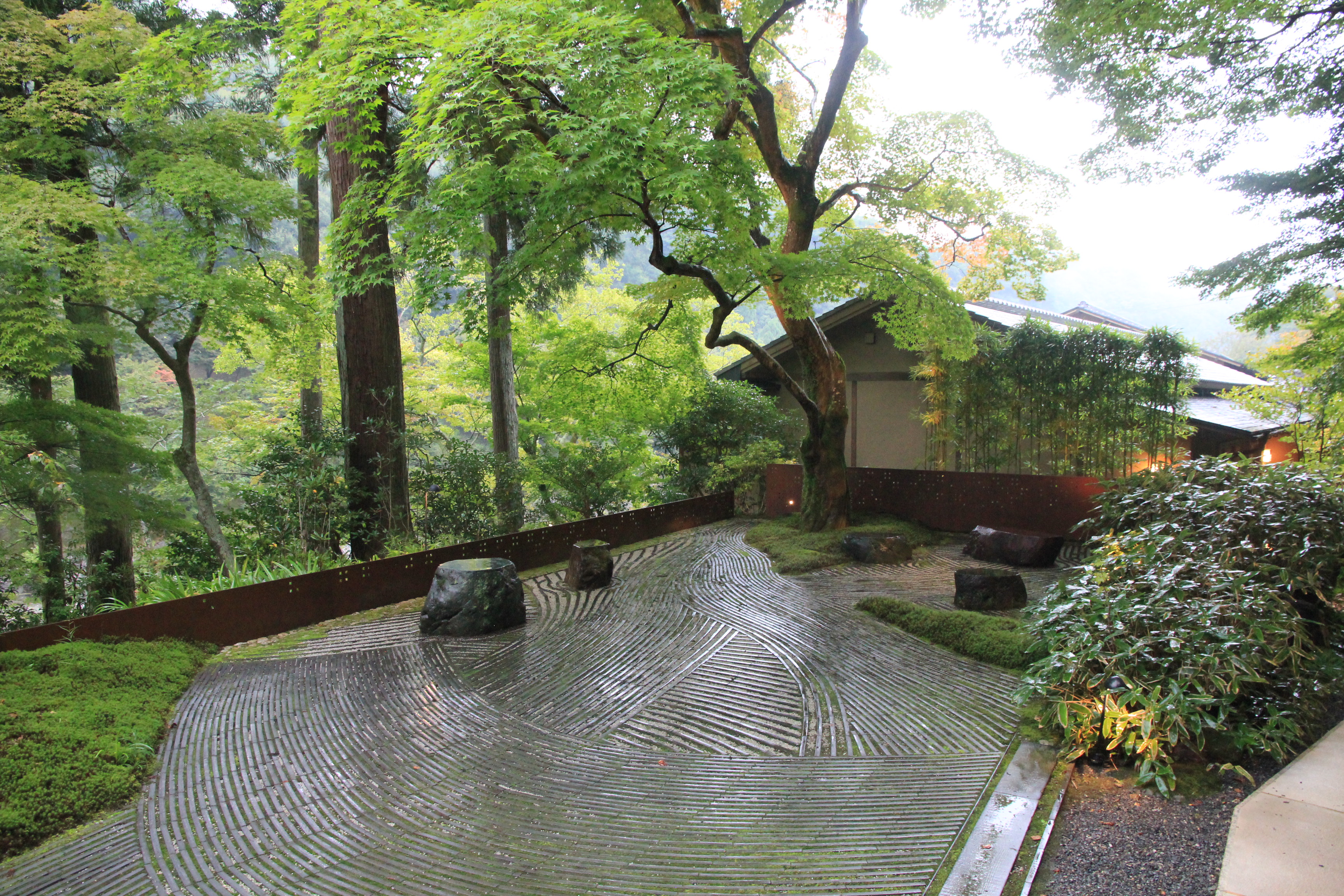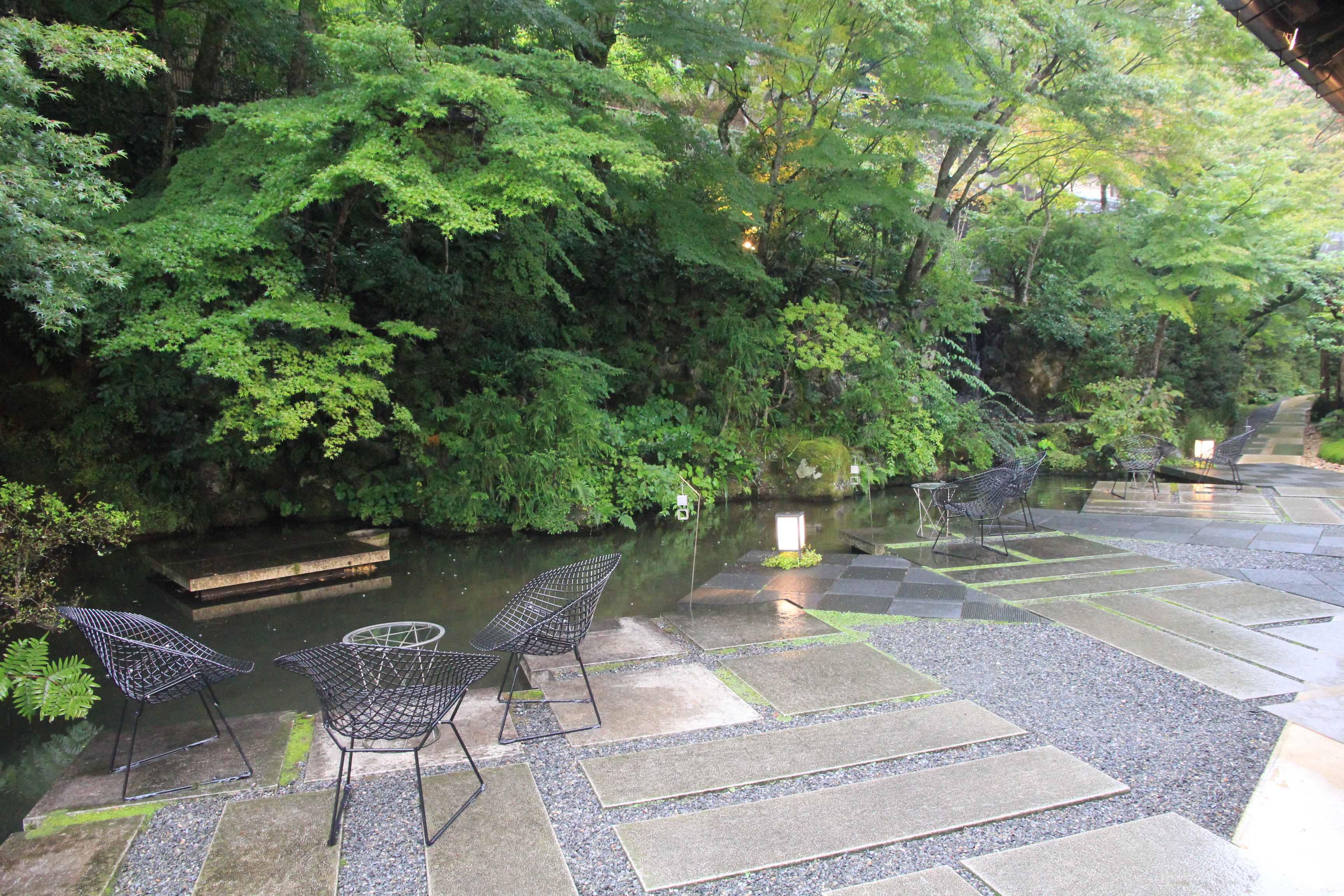 Im hinteren Bereich des HOSHINOYA Kyoto befindet sich noch ein kleiner japanischer Garten.  Hier wird am Morgen Yoga und andere Entspannungskurse angeboten.