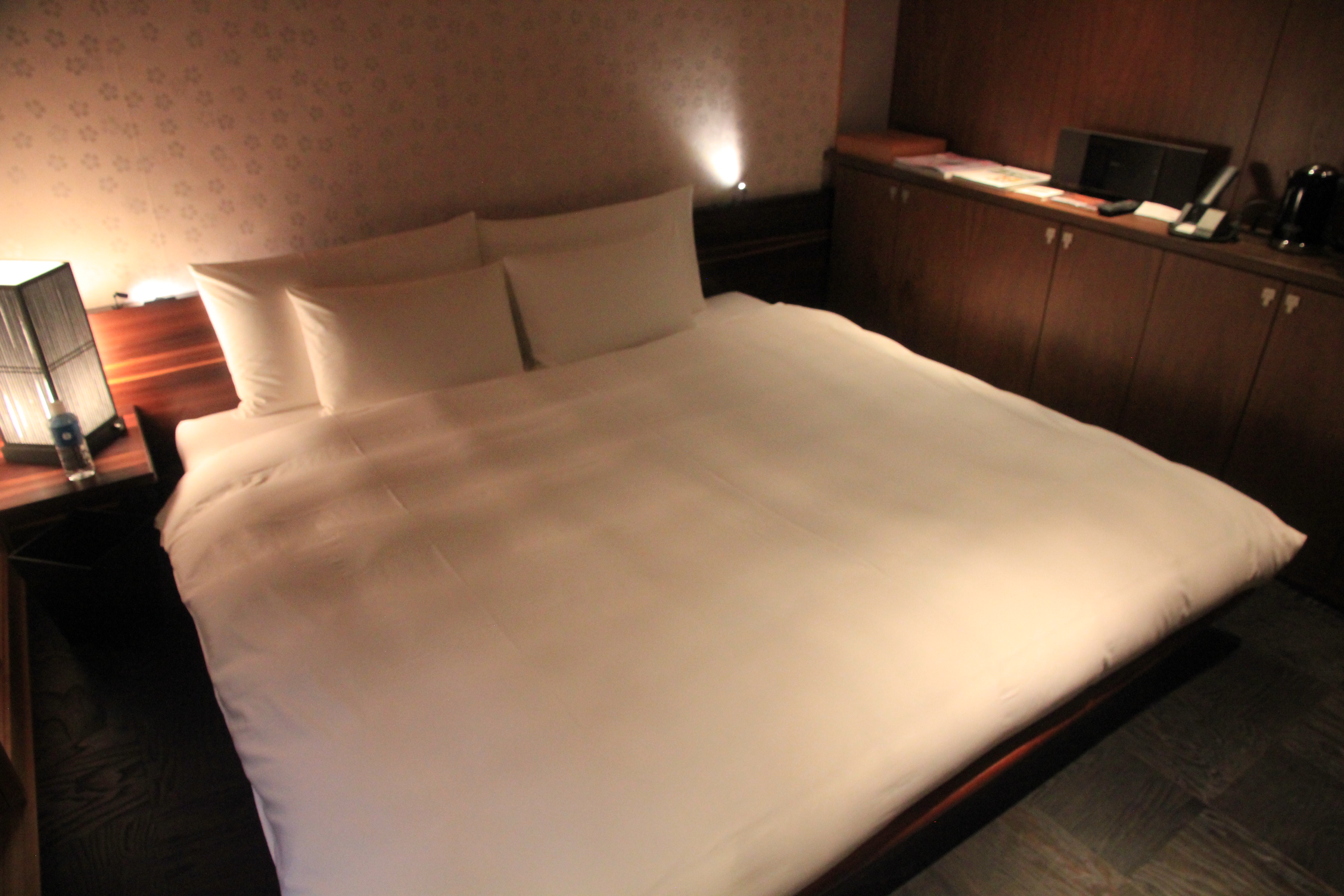 Dass Bett war wirklich sehr bequem. Allerdings muss man dazu sagen, dass die Matratze recht hart war. In den meisten Ryokan Hotels schläft man auf einer dünnen Matratze auf dem Boden. Es gab zweierlei Kopfkissen. Erstere waren sehr hart. Letztere wiederrum extrem weich und kuschelig. Auch die Decke ist sehr bequem und angenehm.