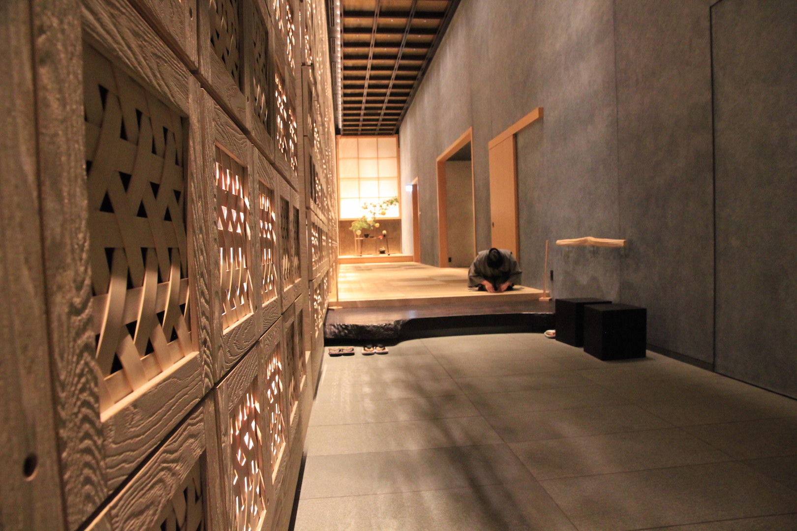 Wenn man das HOSHINOYA Tokyo betritt, merkt man, dass es hier etwas anders ist als in den meisten Hotels. Nachdem sich die Holztüre öffnet, wird man zunächst freundlich begrüßt und gebeten die Schuhe auszuziehen. Im gesamten Hotel trägt man keine Schuhe. Diese werden im Erdgeschoss abgegeben und in eigenen Holzfächern verstaut.