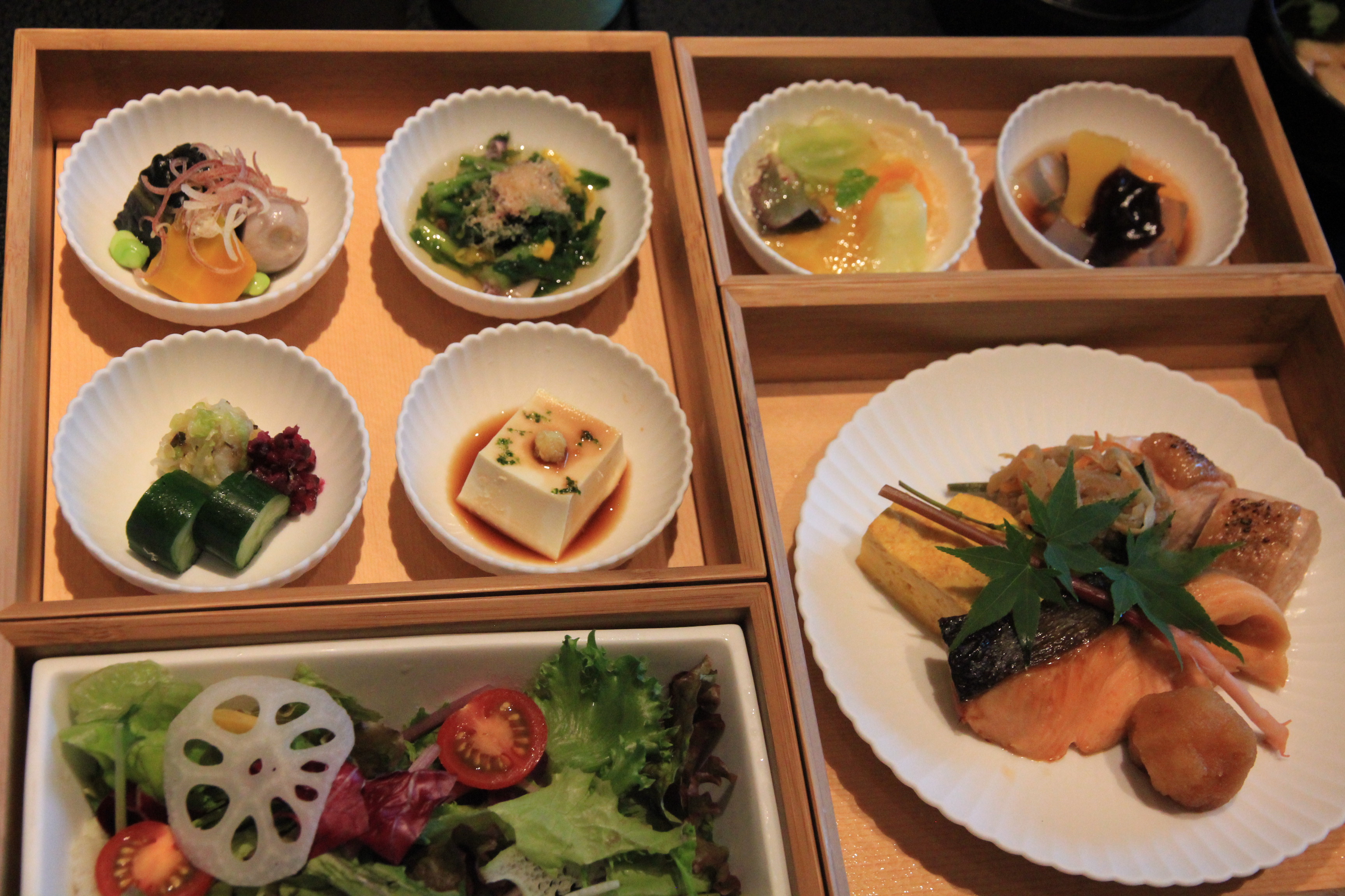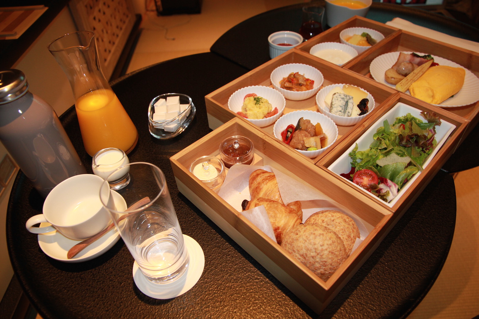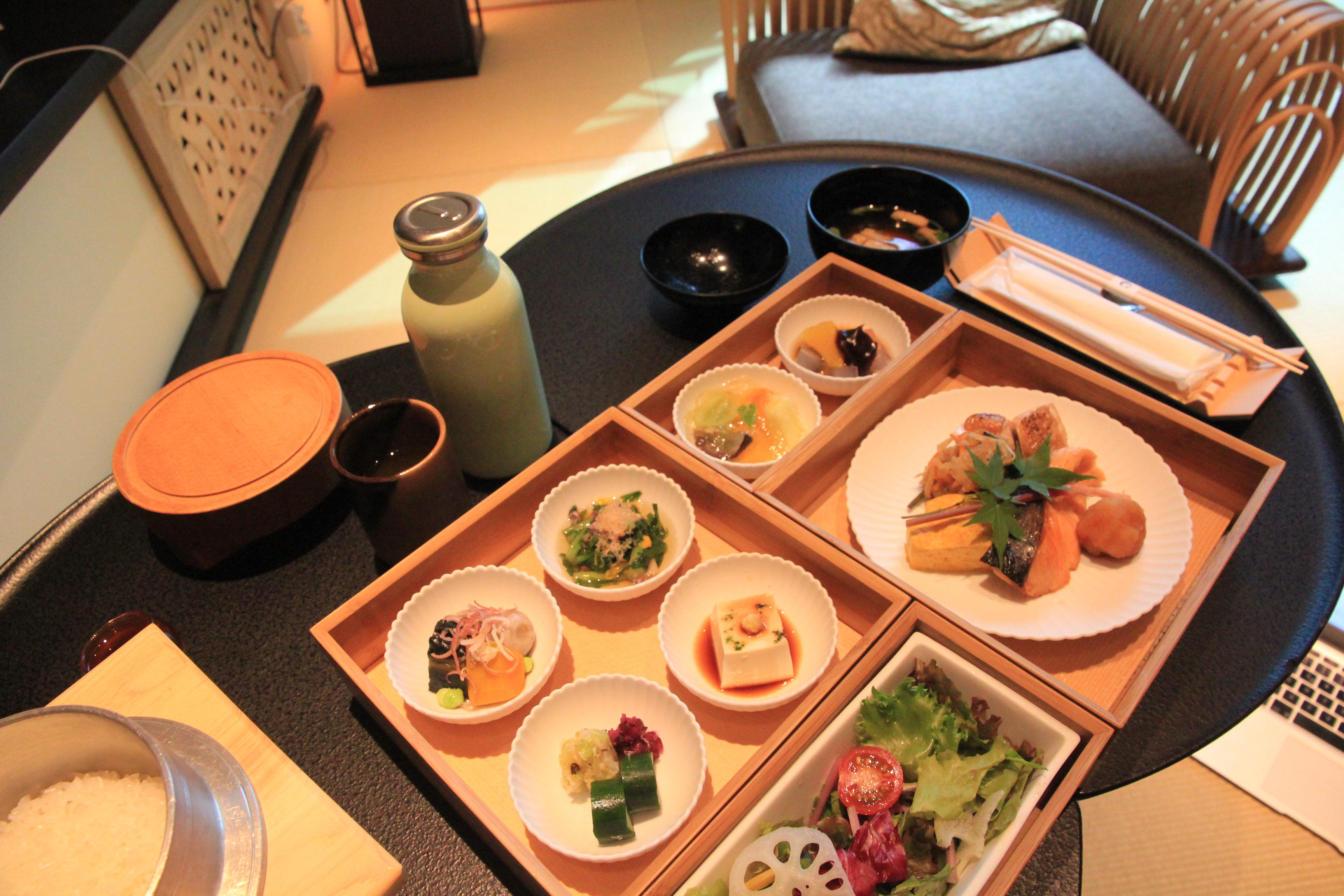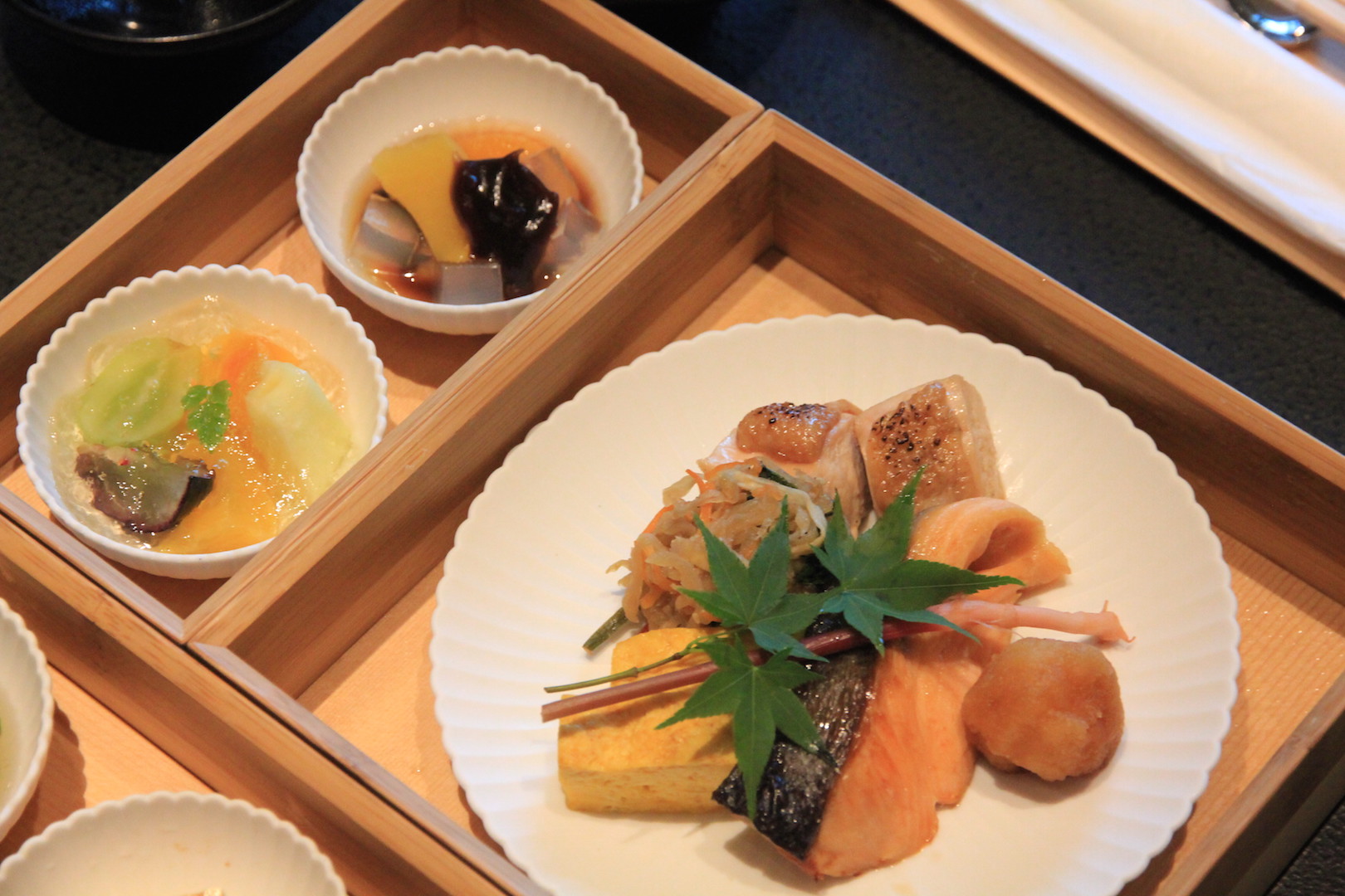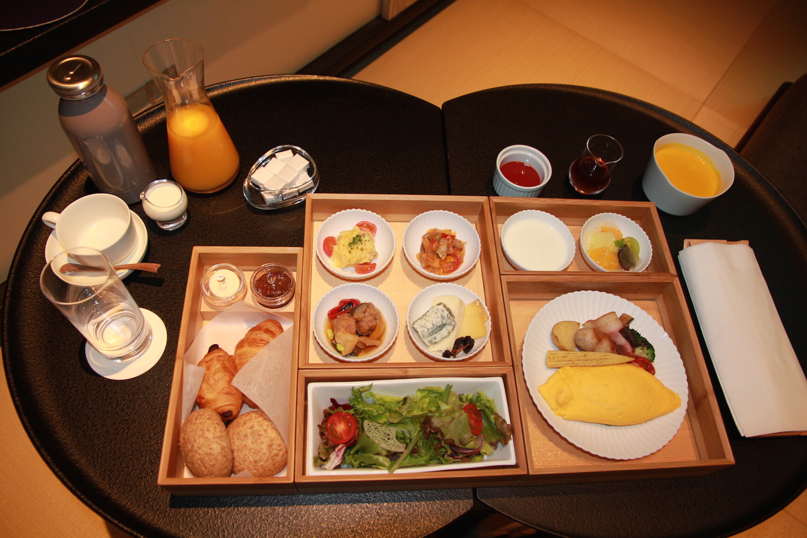 Am nächsten Morgen habe ich ein japanisches Frühstück bestellt. Dies mag für uns Europäer etwas gewöhnungsbedürftig sein, da wir in der Regel lieber süß als herzhaft essen. Neben diversen kleinen Gerichten wie Tofu und Salat in allen möglichen Variationen wurde Lachs und Ei gereicht. Dazu gab es eine Miso-Suppe, Reis und grünen Tee.