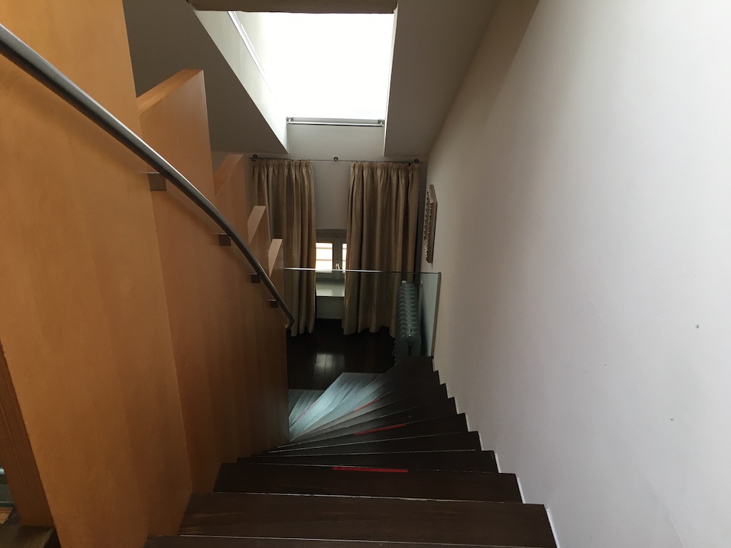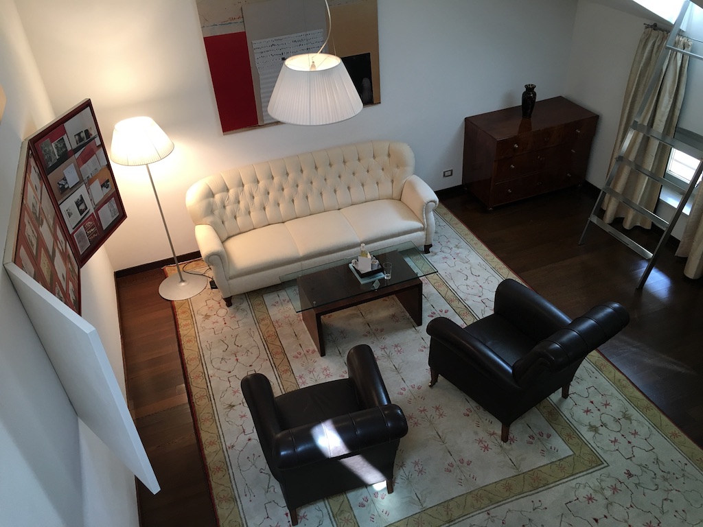 Das ehemalige „Dienstbotenzimmer“ – erkennbar an den kleinen Original-Fenstern – präsentiert sich heute als charmante und großzügige Maisonette mit Wohnraum auf der unteren und Schlafzimmer auf der oberen Ebene.