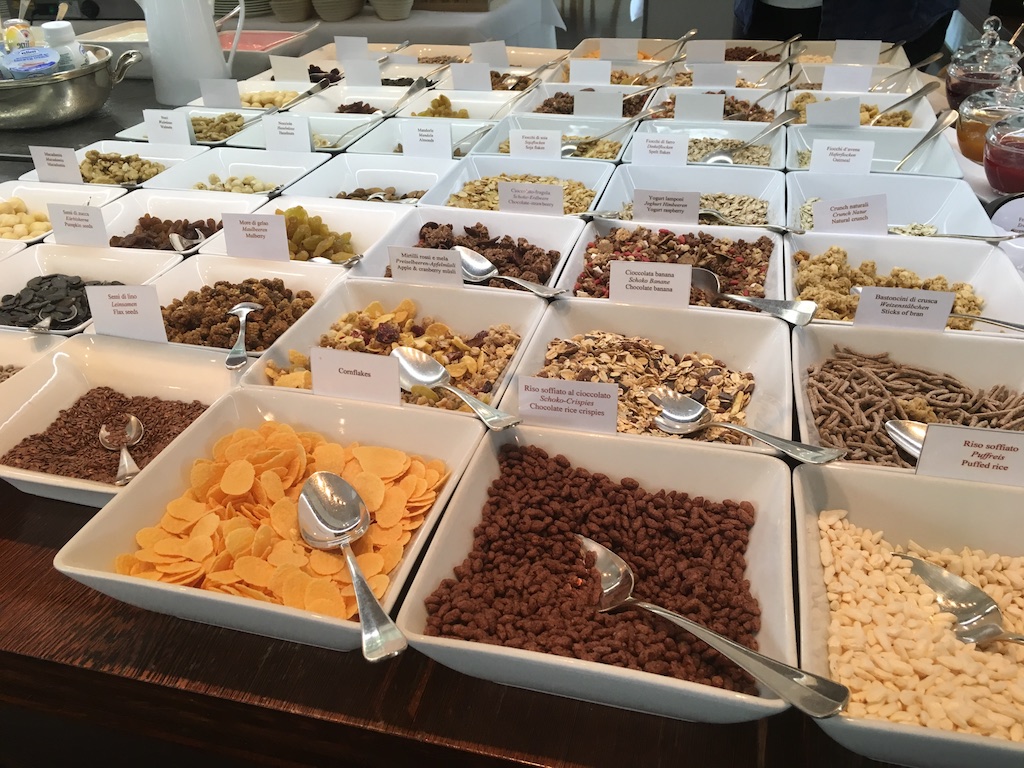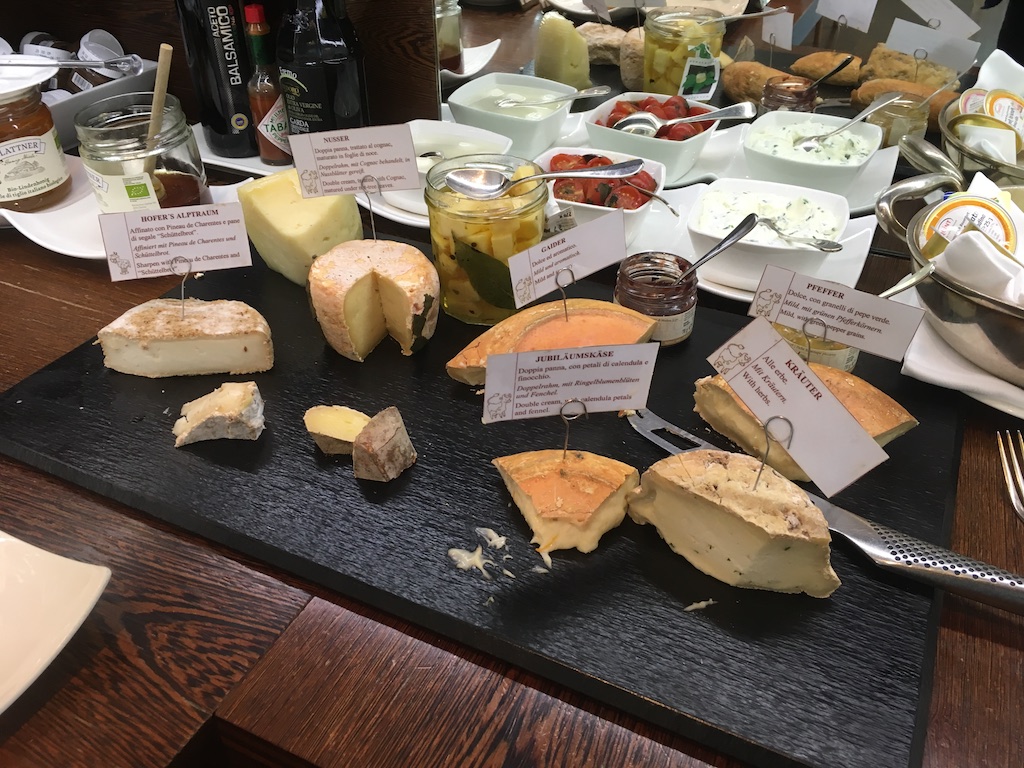 Das Frühstück hatten wir extra hinzugebucht, da es als besonders umfangreich und hochwertig angekündigt wurde. Unsere Erwartungen wurden hier voll erfüllt. Eine große Auswahl an Gebäck und selbst gemachten Kuchen, sowie Brötchen und Brot, frisches lokales aber auch exotisches Obst, eine große Auswahl an Cerealien und Nüssen, sowie eine breite Auswahl an Käse- und Wurstprodukten. Zahlreiche Produkte stammten direkt aus Südtirol und boten somit einen tollen Mehrwert für uns.