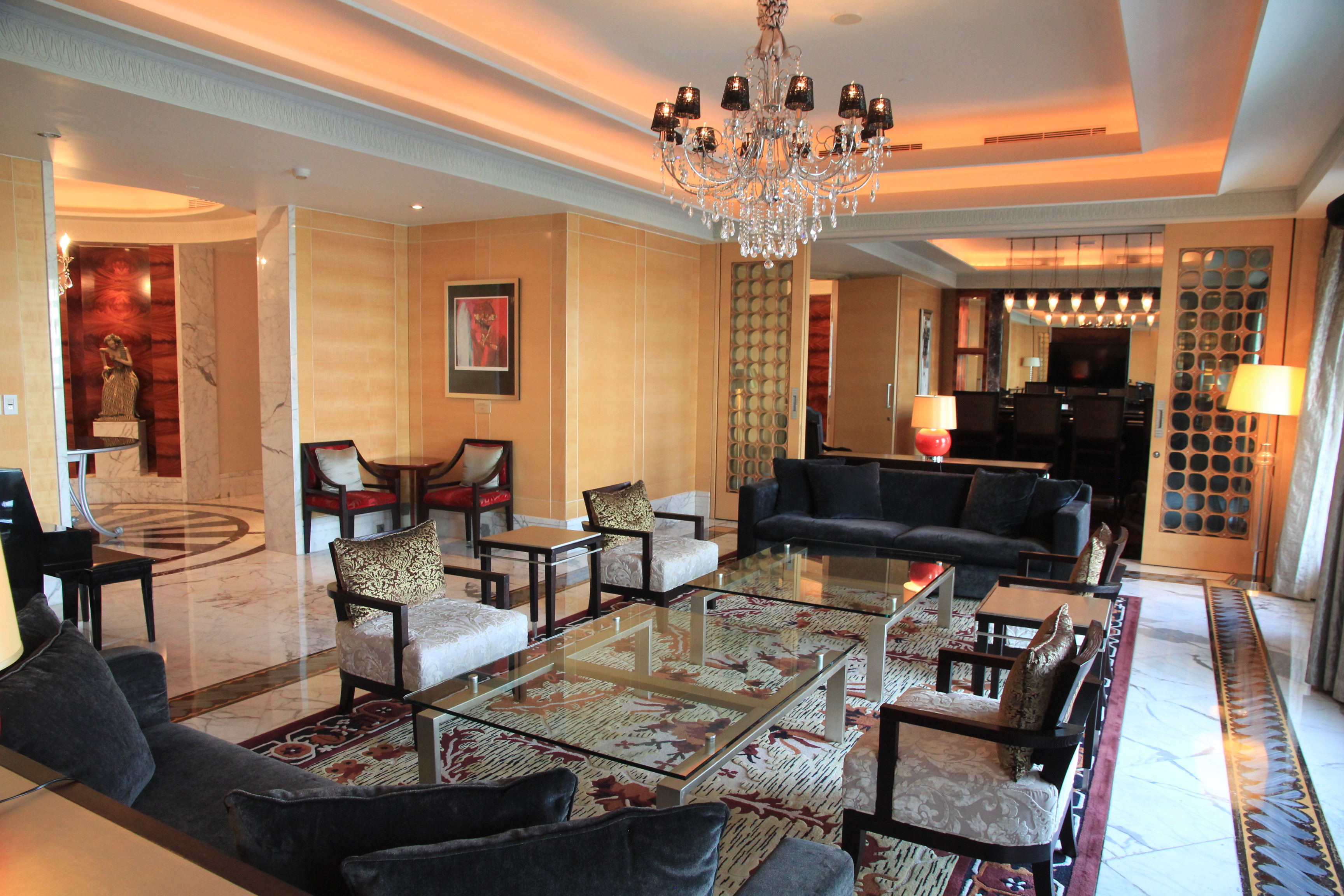 Erstere ist eine riesige Suite mit mehreren Zimmern und einem gigantischem Wohnzimmer.