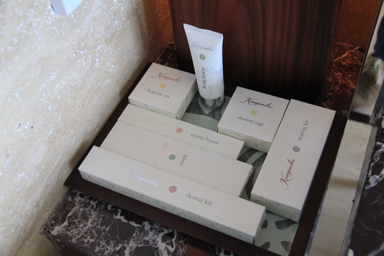 Das Duschgel und die anderen Utensilien waren von Kempinski und von keiner speziellen Marke.