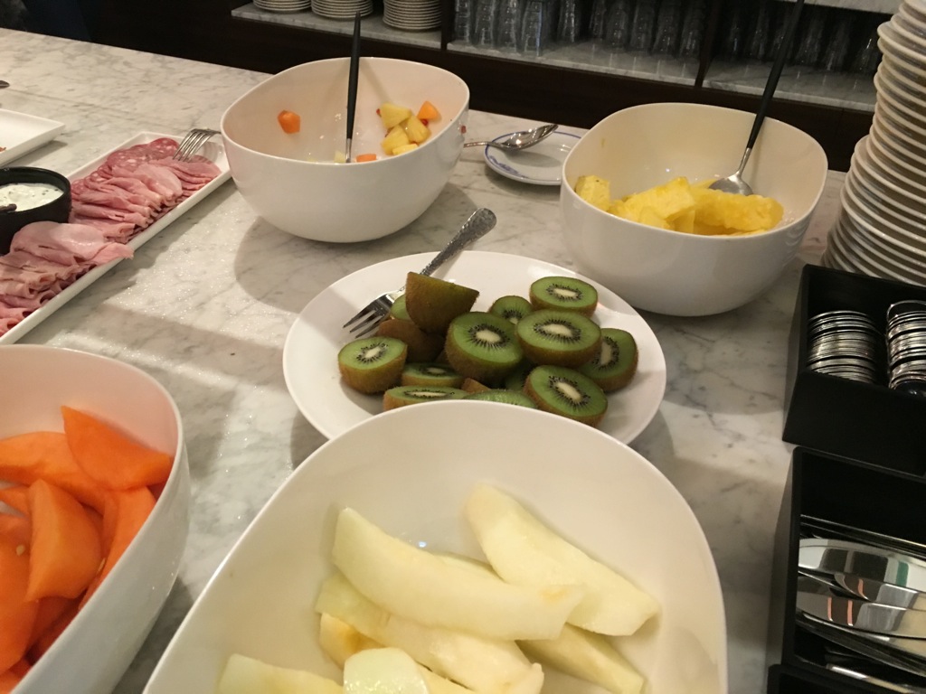 Das Frühstücksbuffet ist recht klein, bietet aber eine große Auswahl an warmen und kalten Speisen. Neben den warmen Speisen, welche am Buffet angeboten wurden, bereitete ein Koch auch frische Eierspeisen wie Omelett oder Spiegeleier zu.