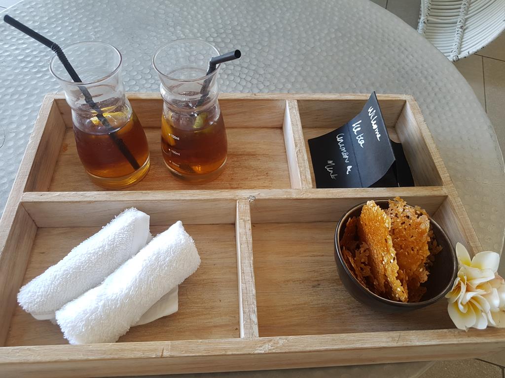 Hier durften wir zunächst Platz nehmen und es wurde ein kleiner Wilkommensteller präsentiert. Die Check-In Formalitäten waren innerhalb weniger Minuten erledigt und wir waren auf dem Weg zum Zimmer. Als wir durch die Anlage liefen wurden uns die Details erklärt und wir wurden auf die verschiedenen Restaurants und Aktivitäten hingewiesen.