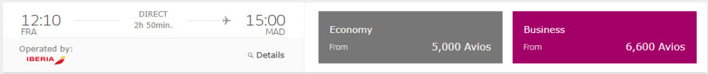 • Iberia Business Class von Frankfurt nach Madrid für 6.600 Avios