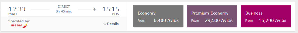 • Iberia Business Class von Madrid nach Boston für 16.200 Avios