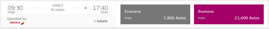 • Iberia Business Class von Madrid nach Doha für 23.600 Avios